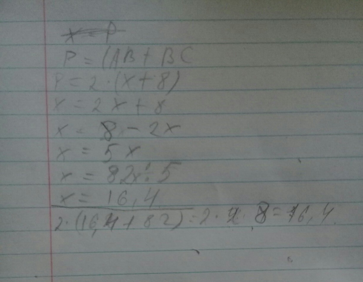 Периметр параллелограмма равен 82.Одна сторона на 8 меньше соседней с ней стороны.Найдите длинны сторон данного параллелограмма