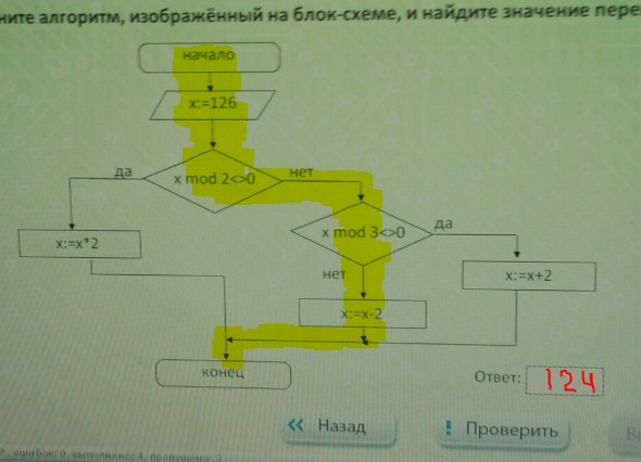 Выполните алгоритм по блок-схеме и найдите значение переменной X