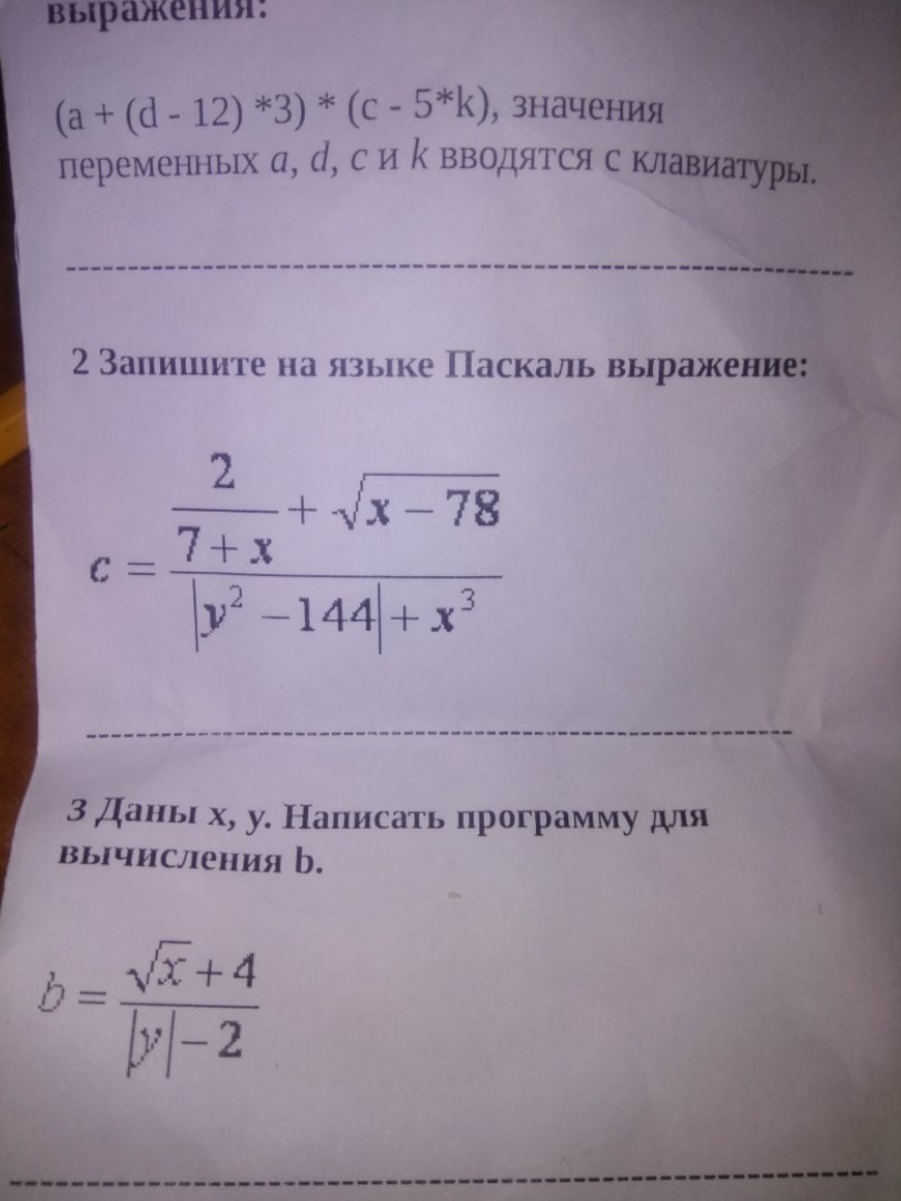c := (2 / (7 + x) + Sqrt(x - 78)) / (Abs(y * y - 144) + x * x * x);