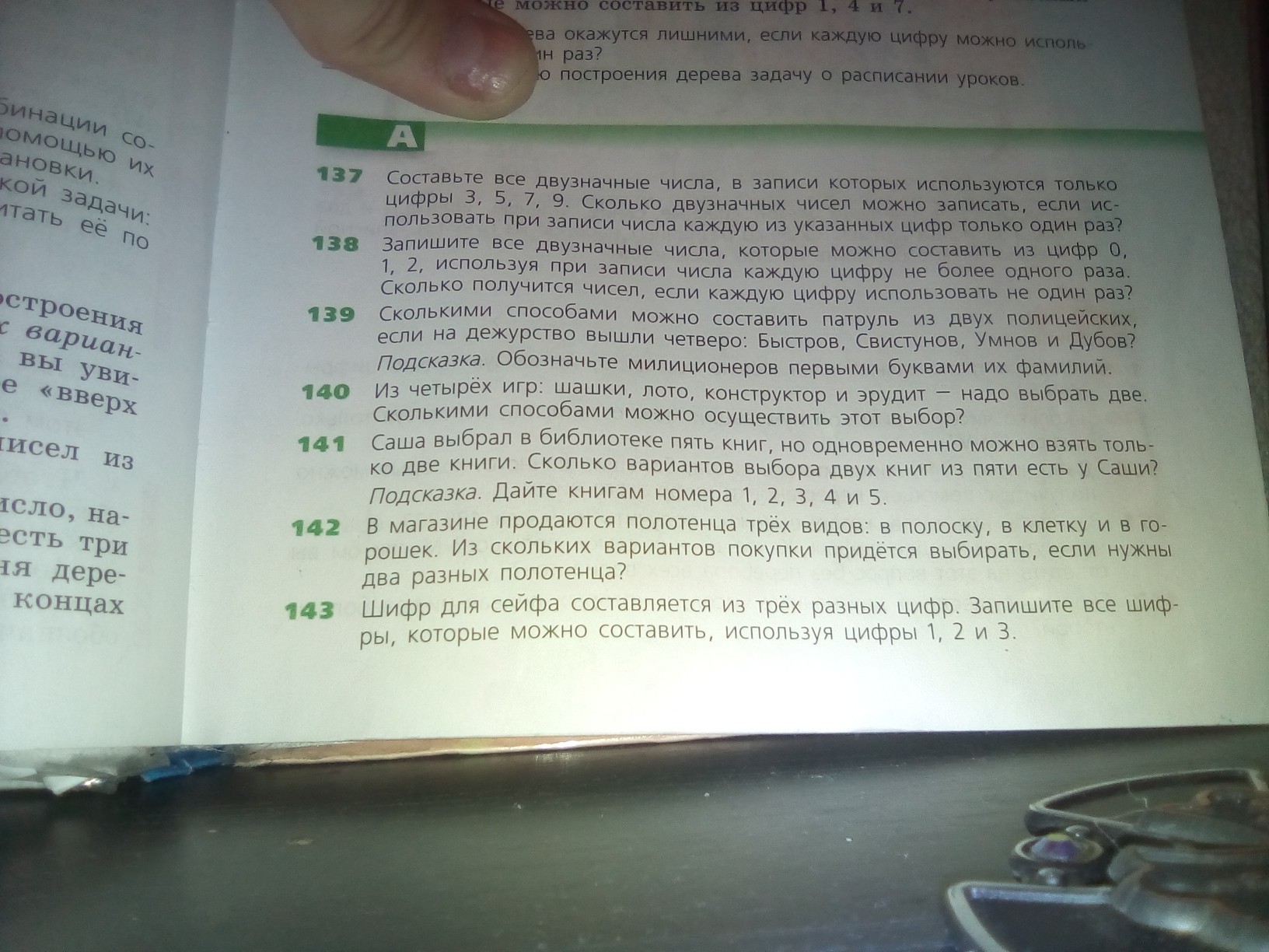 номер 142 В магазине продаются полотенца из трёх видов в полоску в клетку и в горошек. Из скольких вариантов покупки придётся выбирать если нужны два разных полотенца? ПОМОГИТЕ ПЛИЗ
