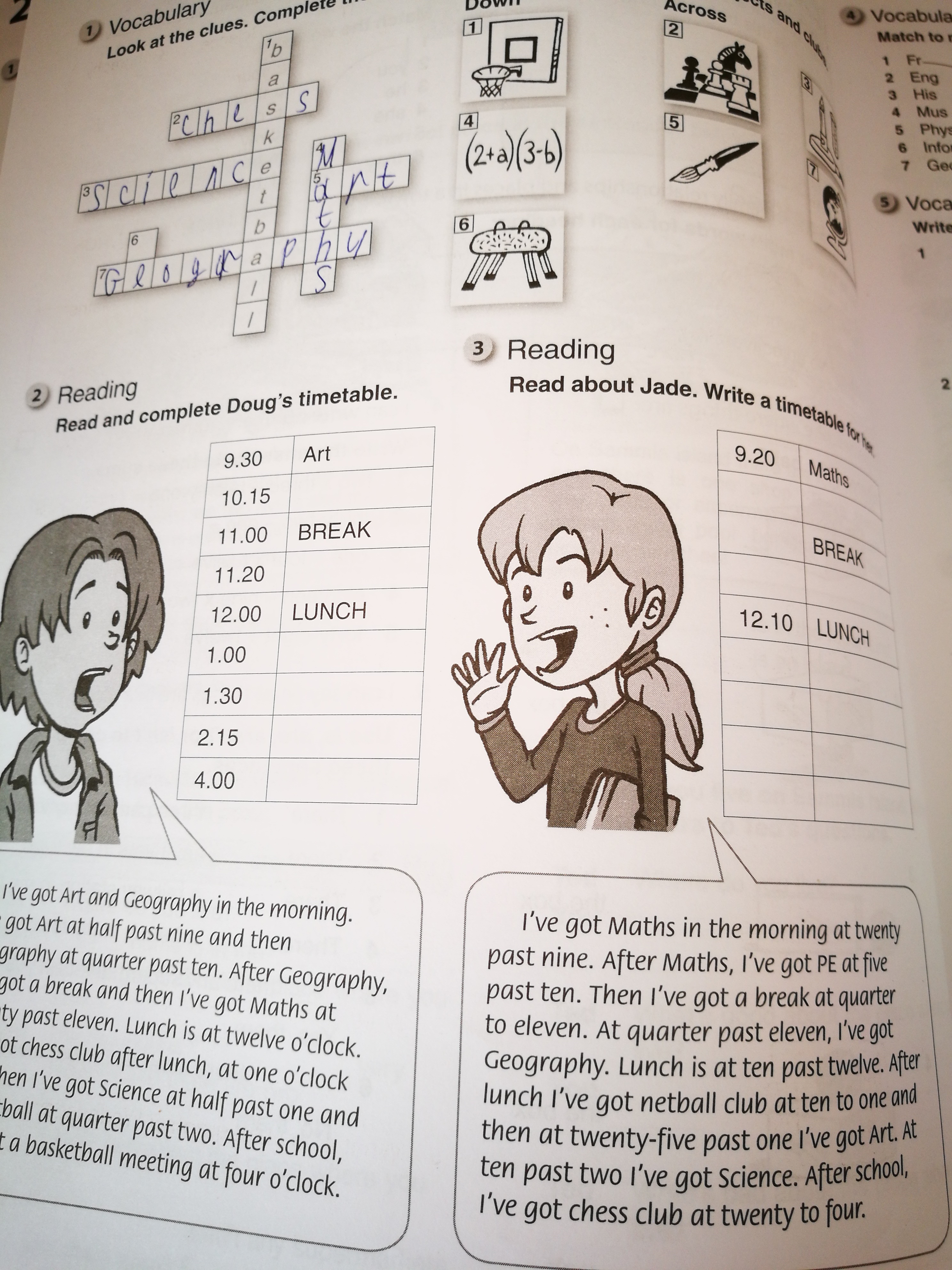10:15 geography 11:20 March 1:00 chess club 1:30 science 2:15 football 4:00 basketball meeting