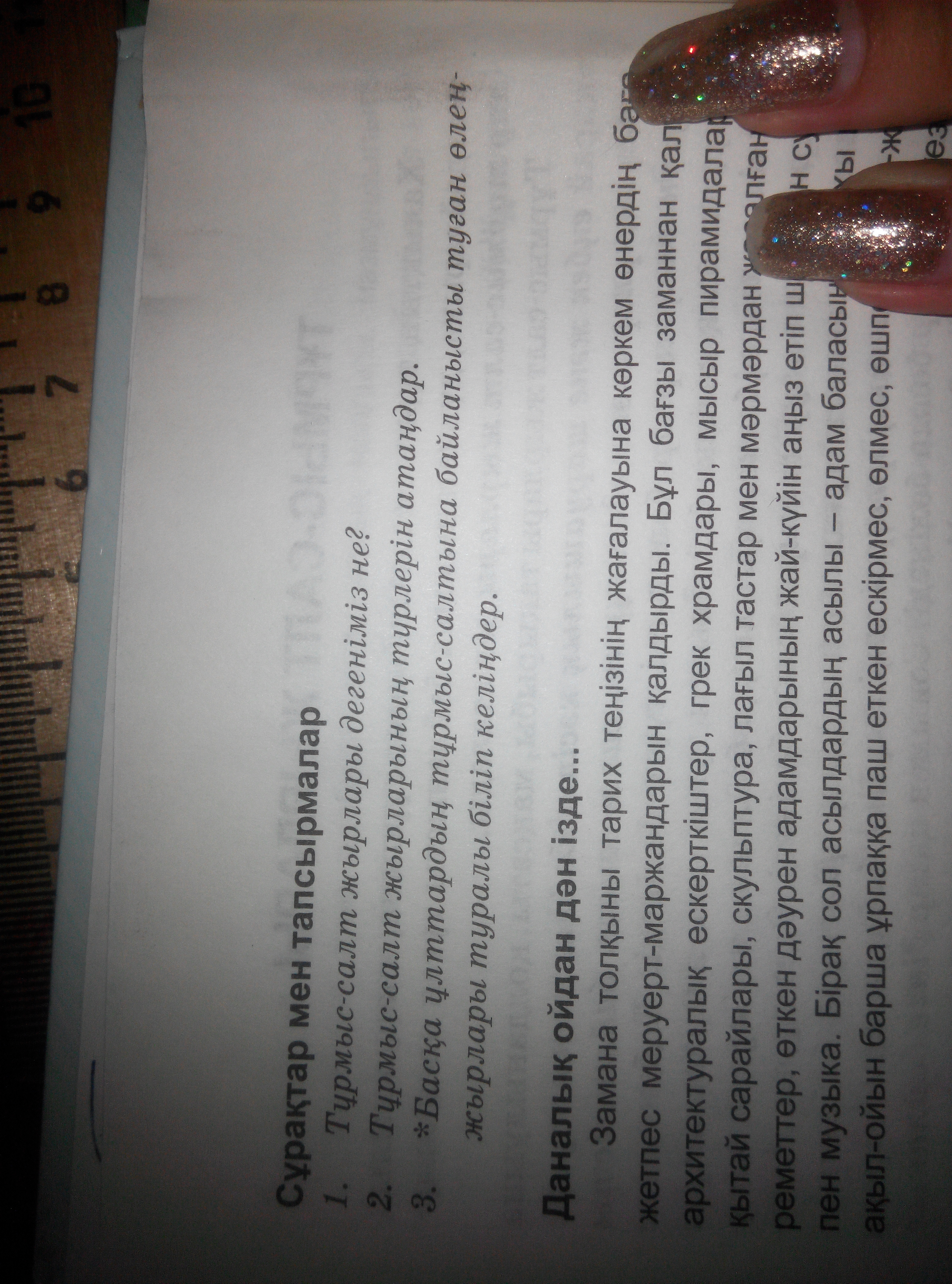 1) Тұрмыс салт жырлары-қазақ халқының әдет-ғұрып, салт жоралары на байланысты туындаған өлең-жырлар.2)Бата-тілектер,шығармалар, өлең-жырлар, Наурыз жыры.