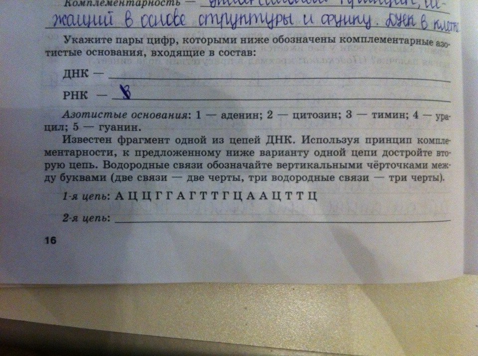 ДНК А -- Т, Г--- Ц или 1-3, 2-5