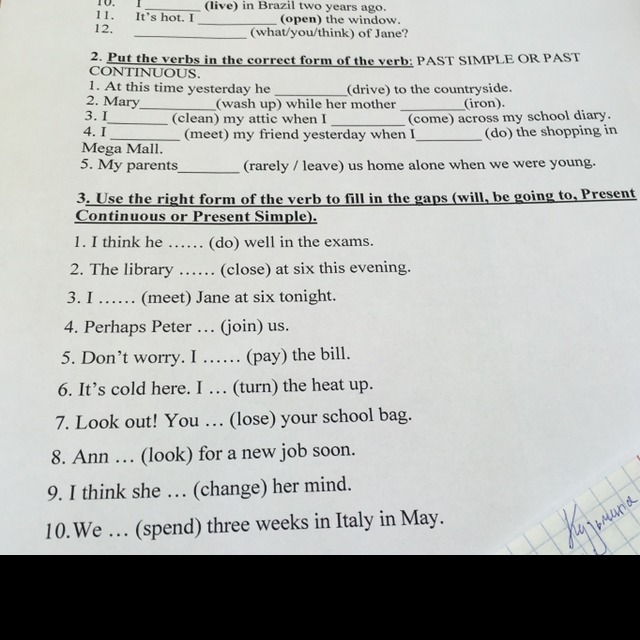 4. I (met) my friend yesterday when I (was doing) the shopping...