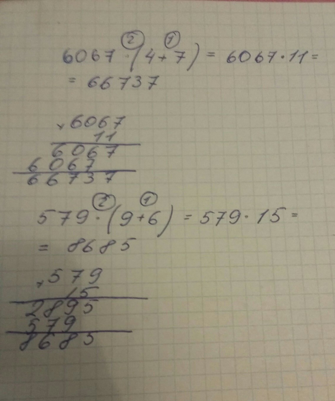 вычисли значение выражений 6067*(4+7) 579*(9+6)
