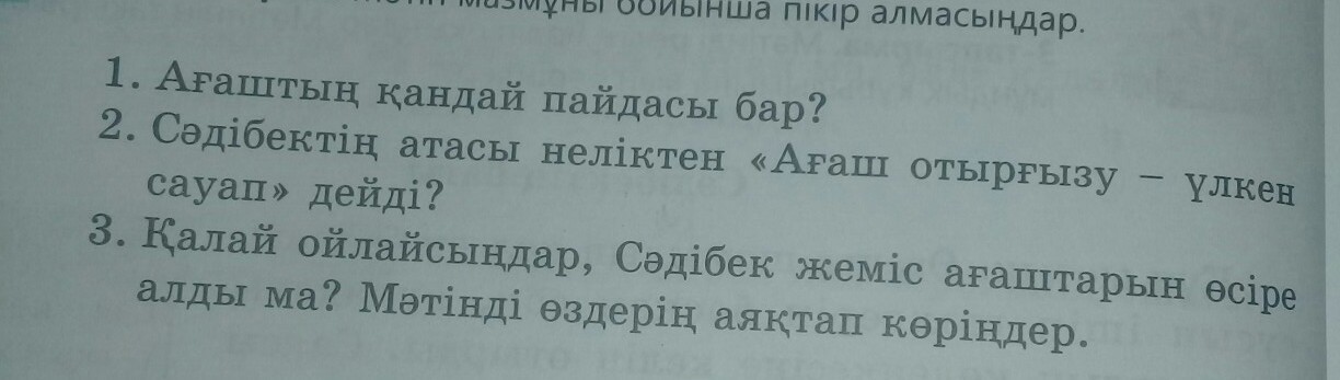 2. Бір тал жұлсан жүз тал ек деп бекер айтылмаған! Ағаш отырғызу үлкен сауап болады. Ағашты отырғызған адам айналасына көп пайда әкеледі!