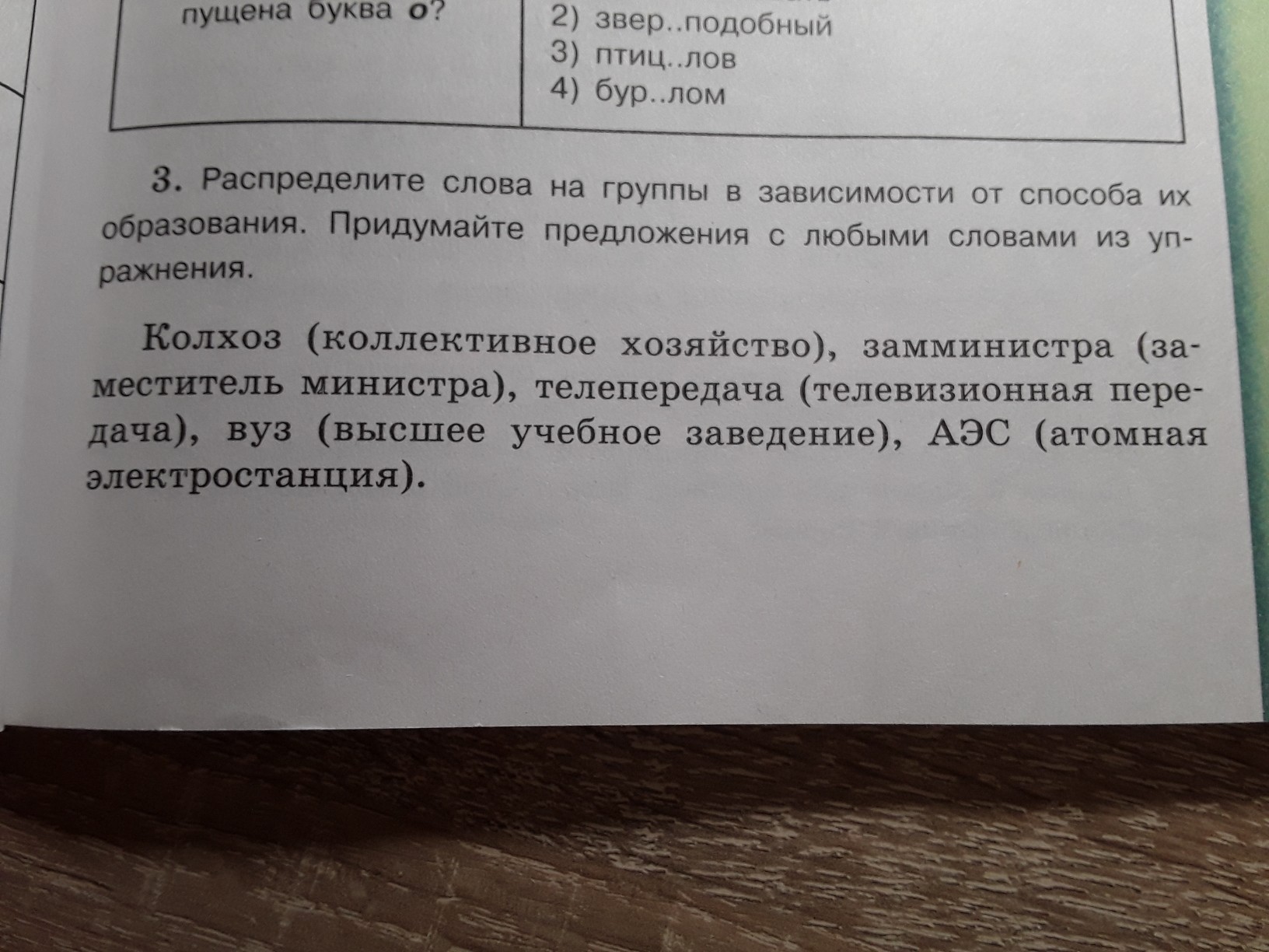 1. Колхоз - слоговая аббревиатура (состоит из начальных частей каждого слова словосочетания: коллективное хозяйство)