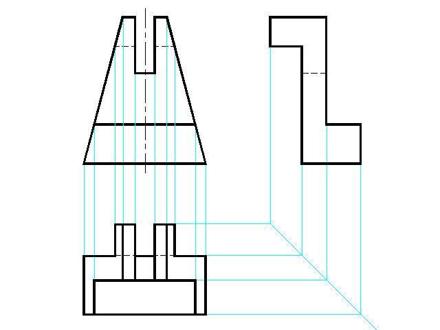Голубые линии - вспомогательные, на чертеже должны быть очень тонкими и выполнены простым карандашом