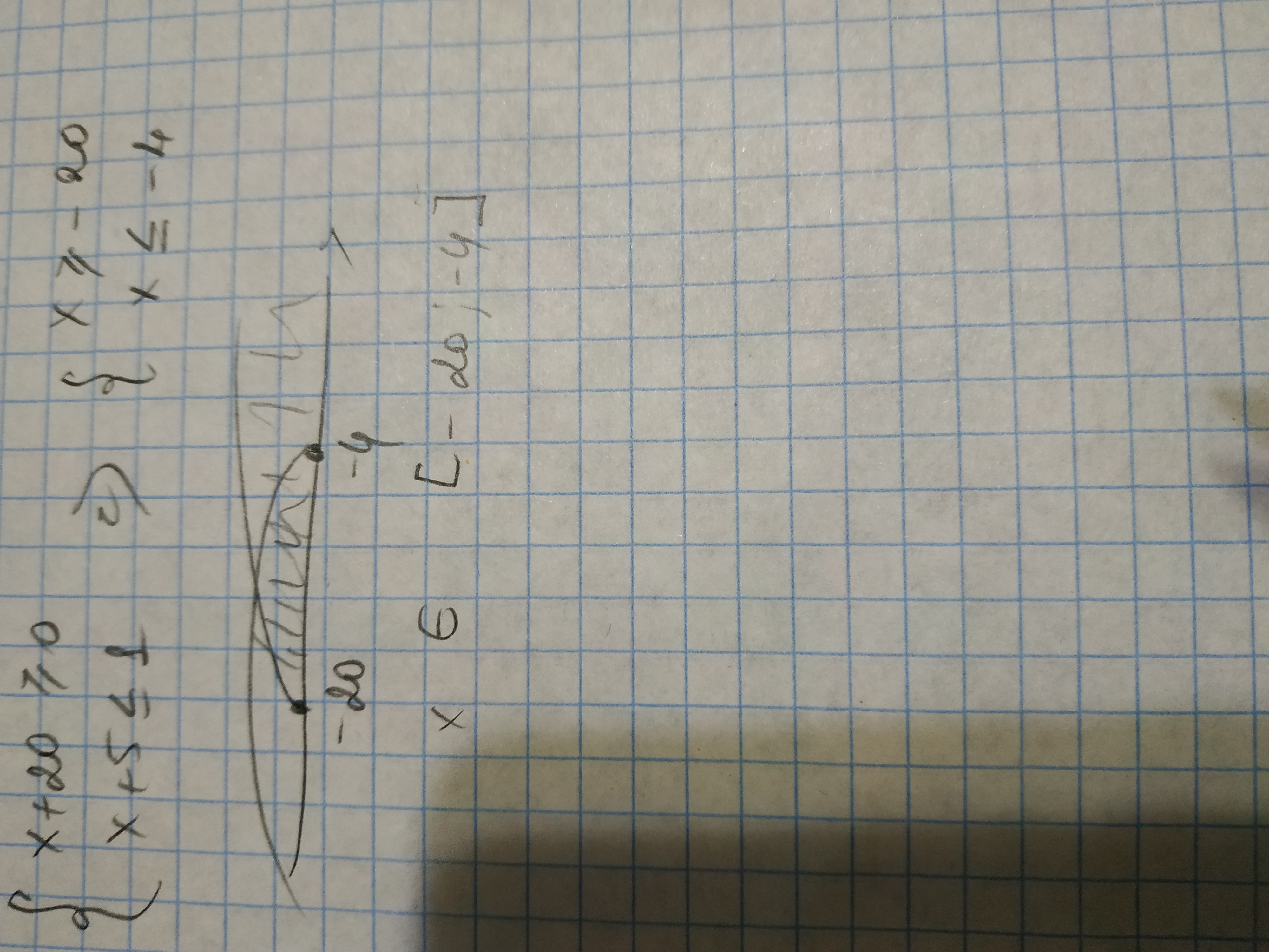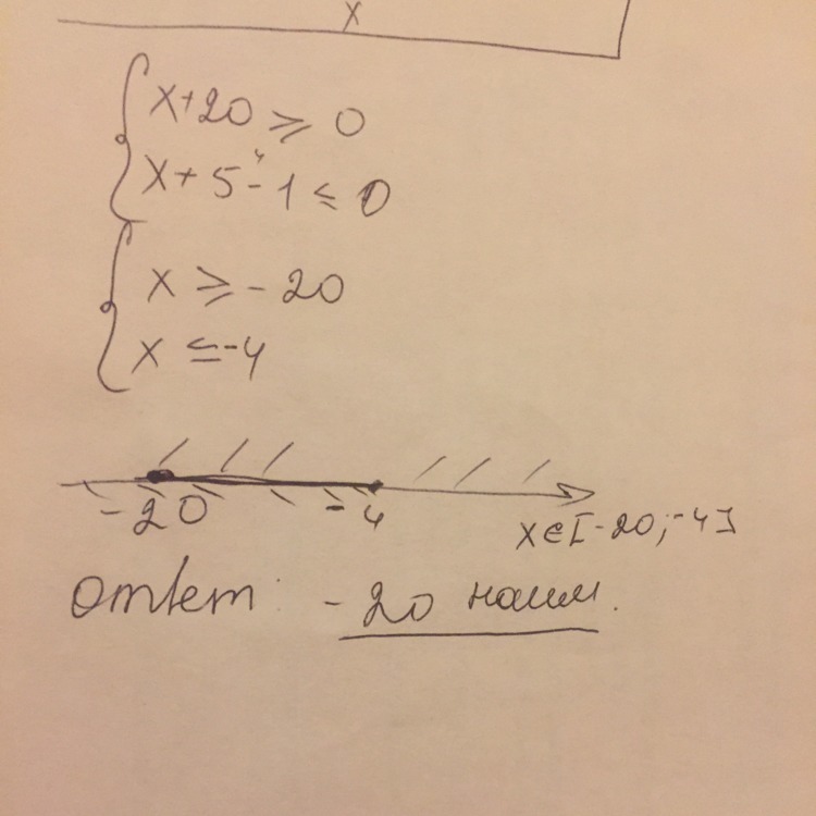 x ∈ [-20; -4] потому что x ≥-20 и x ≤ - 4