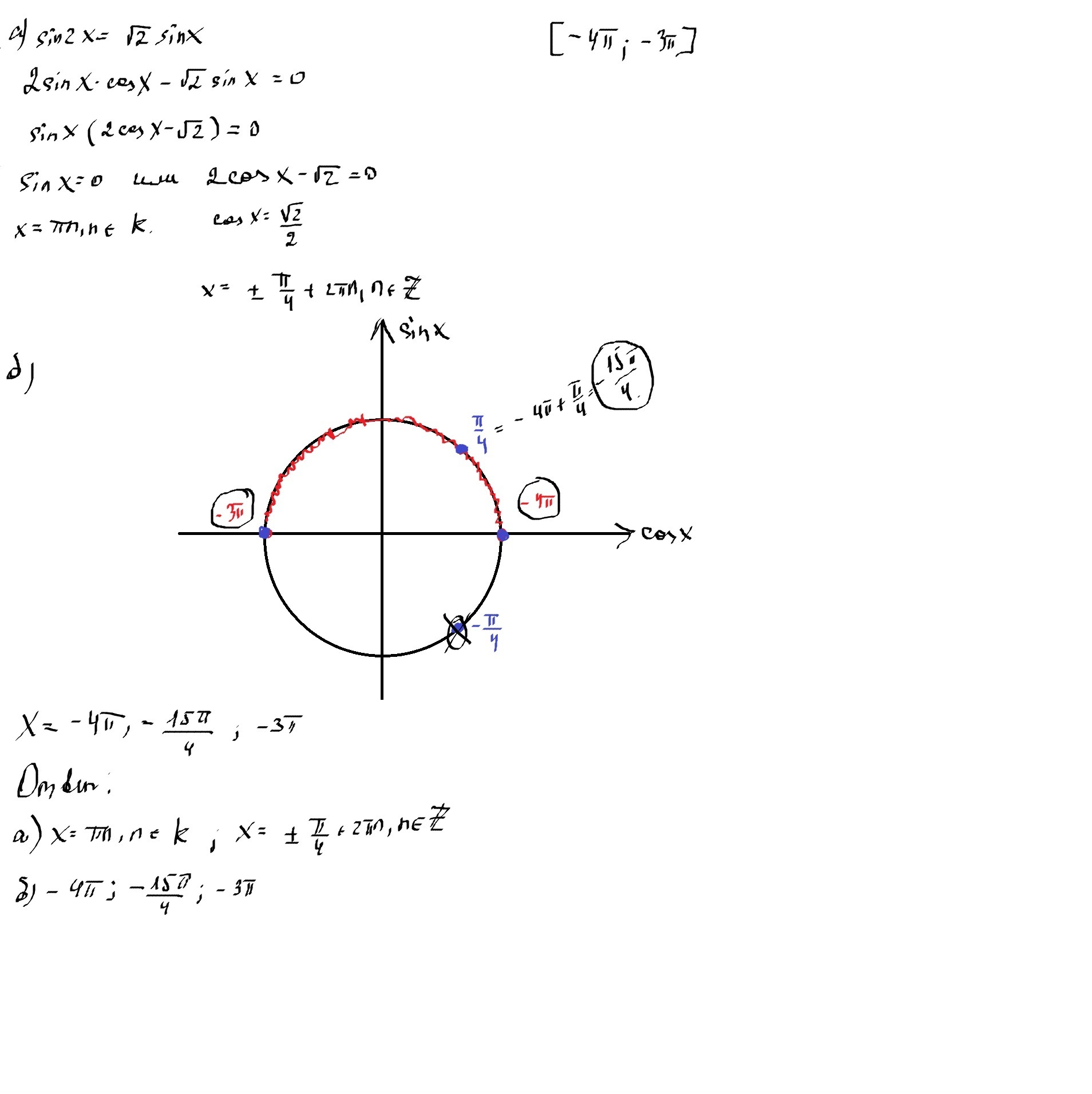 б) Найдите все корни уравнение, принадлежащие промежутку [-4пи;-3пи]