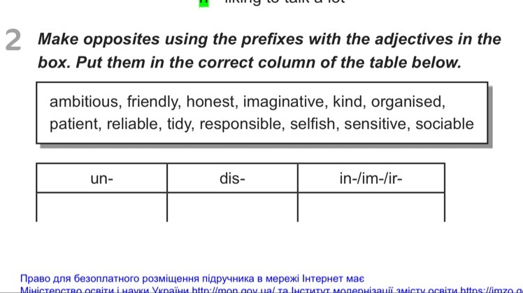 un: ambitious, friendly, kind, organised, tidy, selfish, sociable