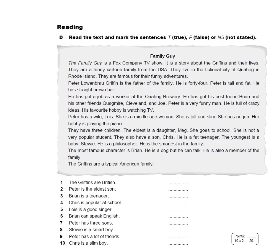 1.F, 2.F, 3.F, 4.NS, 5.NS, 6.T, 7.F, 8.T, 9.T, 10.F