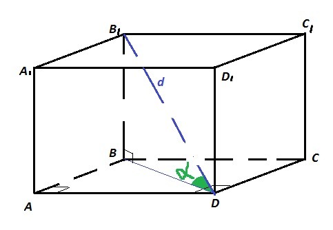 ΔBB₁D - прямоугольный, ∠B₁BD = 90°; B₁D = d; ∠B₁DB = α