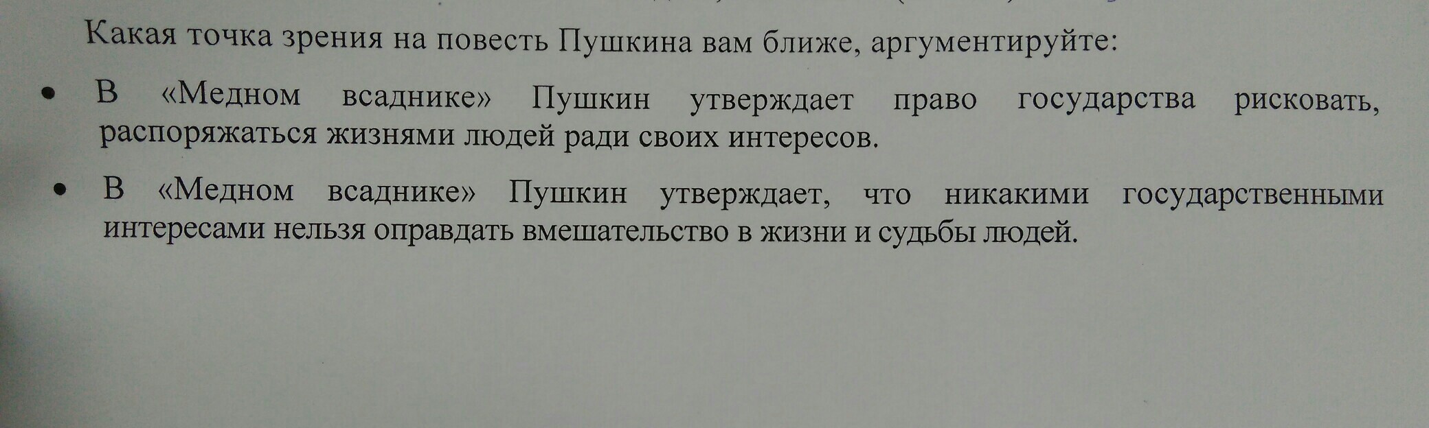 Второй. В Пушкин утверждает, что никакими государственными интиресами нельзя оправдать вмешательство в жизни и судьбы людей