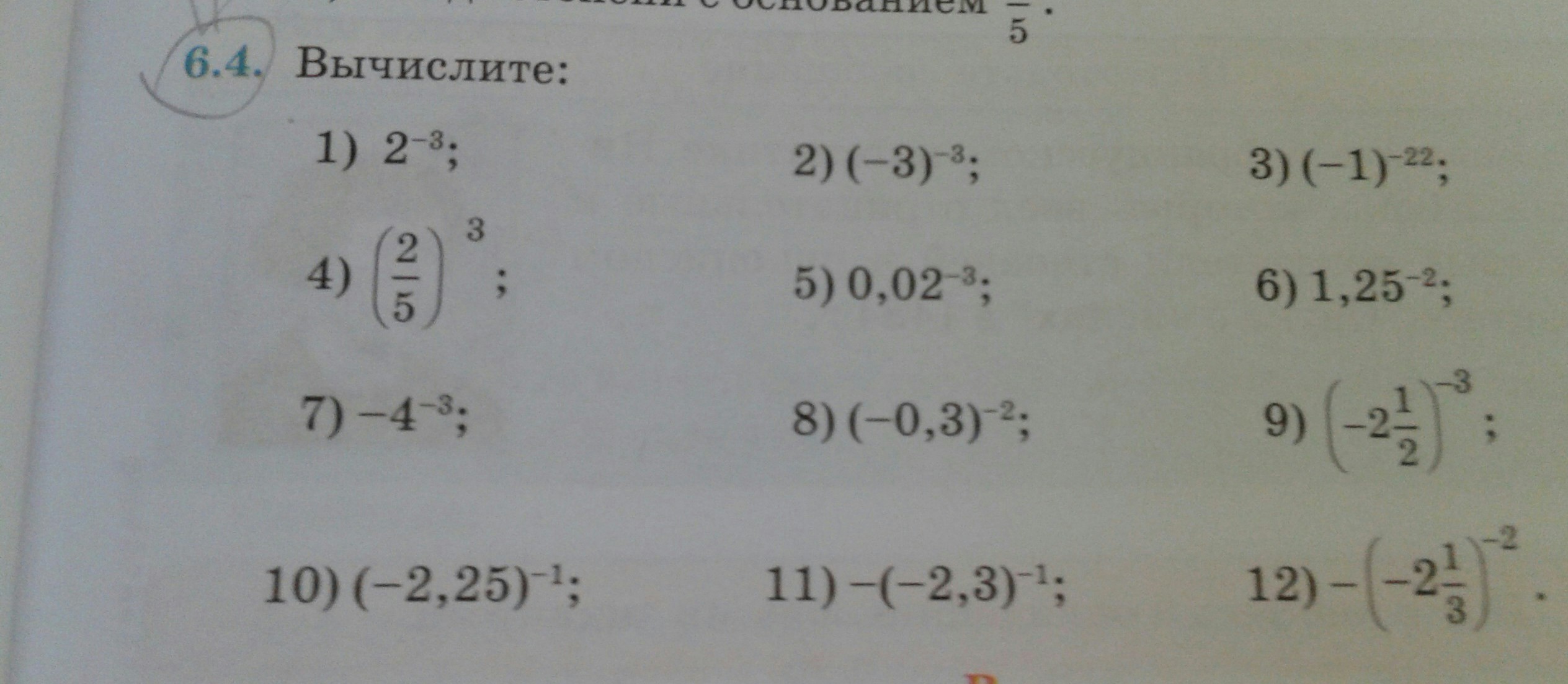 6)1,25^{-2}=(frac{125}{100} )^{-2}=(frac{5}{4} )^{-2}=(frac{4}{5})^{2} =0,8^2=0,64