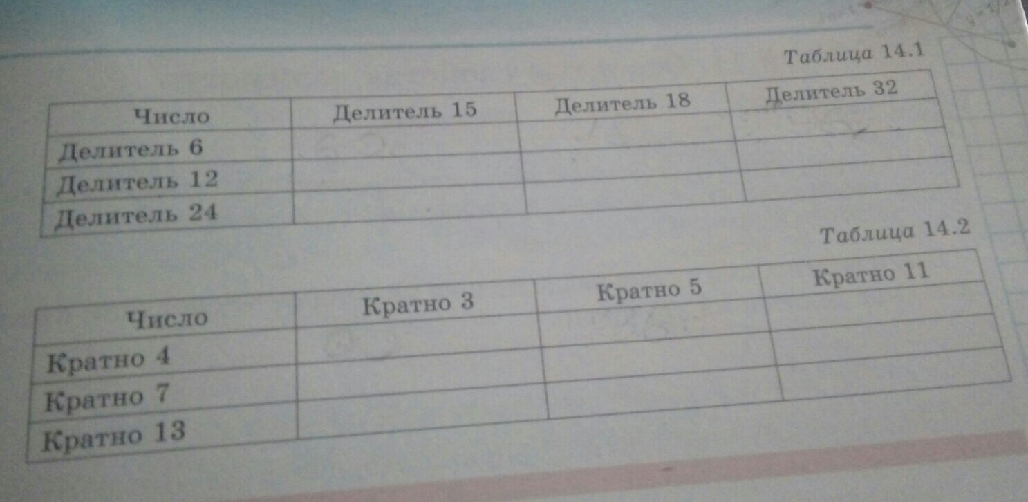 заполните таблицу 14, выписывая пустые клетки по два числа, удовлетворяющие обоим условиями(напишите на листочке и сфоткайте вместе с таблицей)