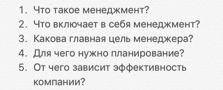 1) What is management? 2)Which includes management? 3)What is the main goal of the manager? 4)Why planning? 5)What determines the effectixeness of the company?
