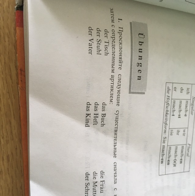 N. der Tisch; Stuhl; Vater; Schrank; das Buch; Heft ; Kind