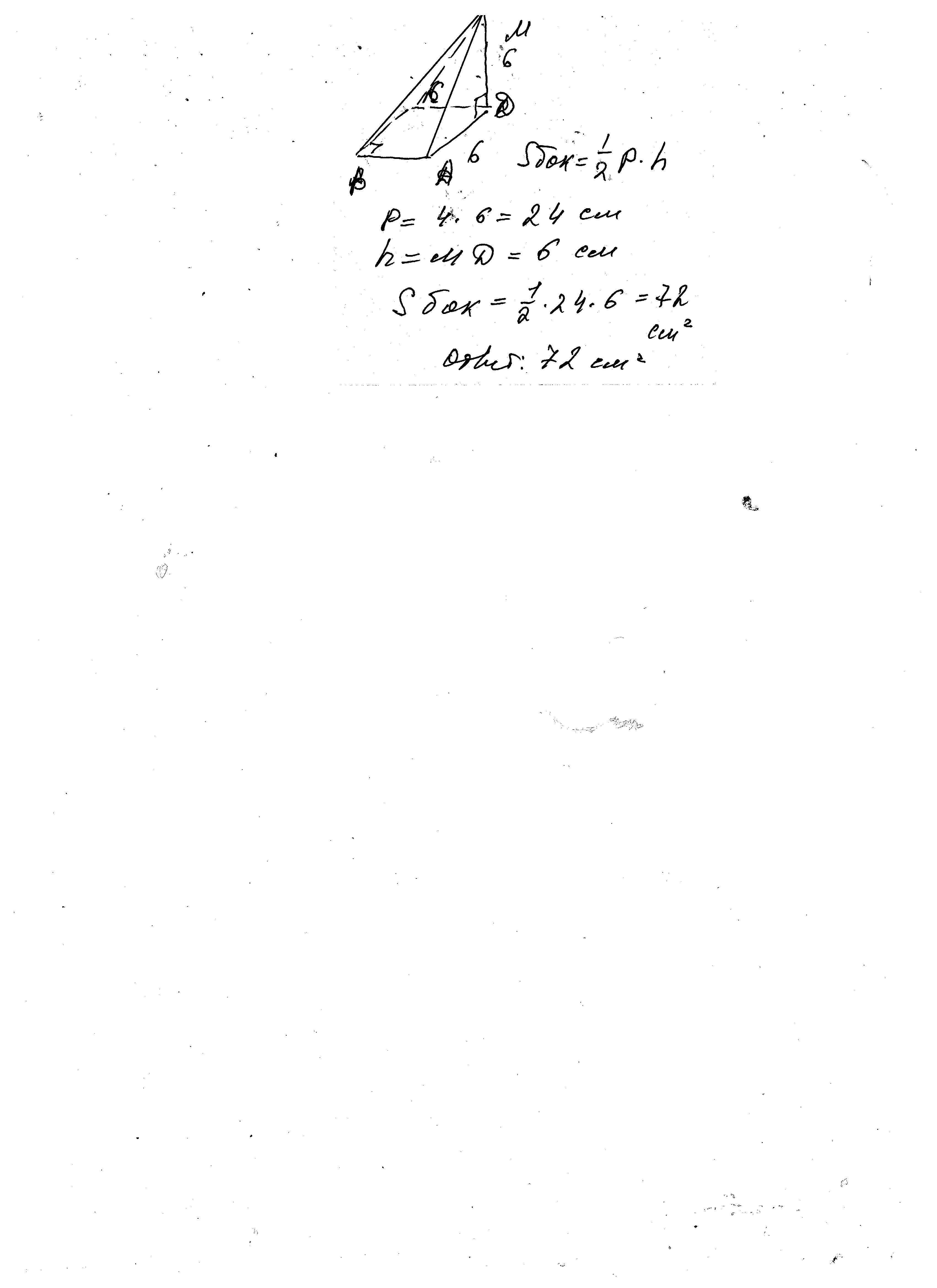основанием пирамиды mabcd является квадрат abcd ребро md перпердикулярно к плоскости основания ad=dm=6см найдите площадь боковой поверхности пирамиды