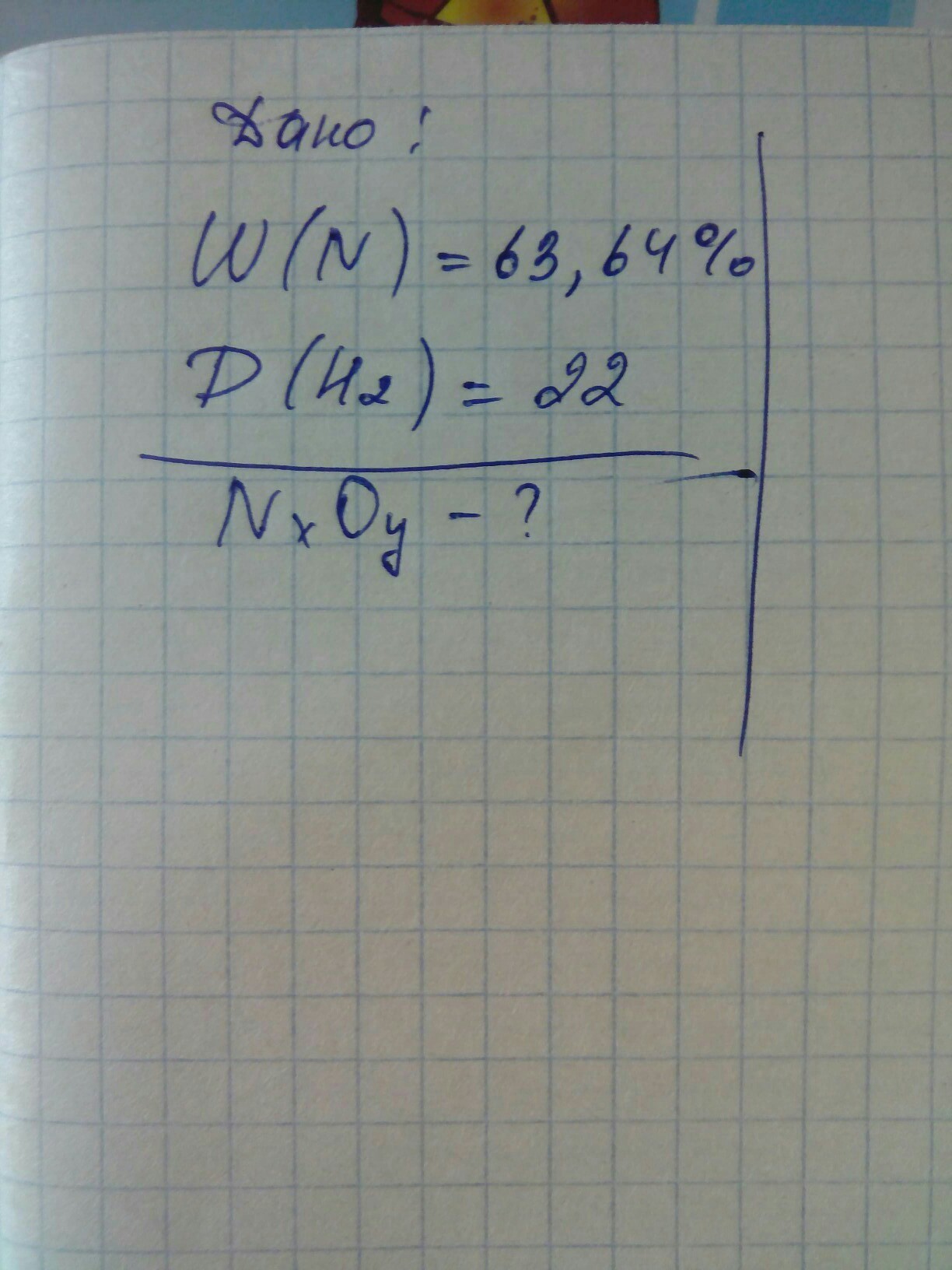 M(NxOy) = D(H2)*M(H2) = 22*2 = 44 г/моль