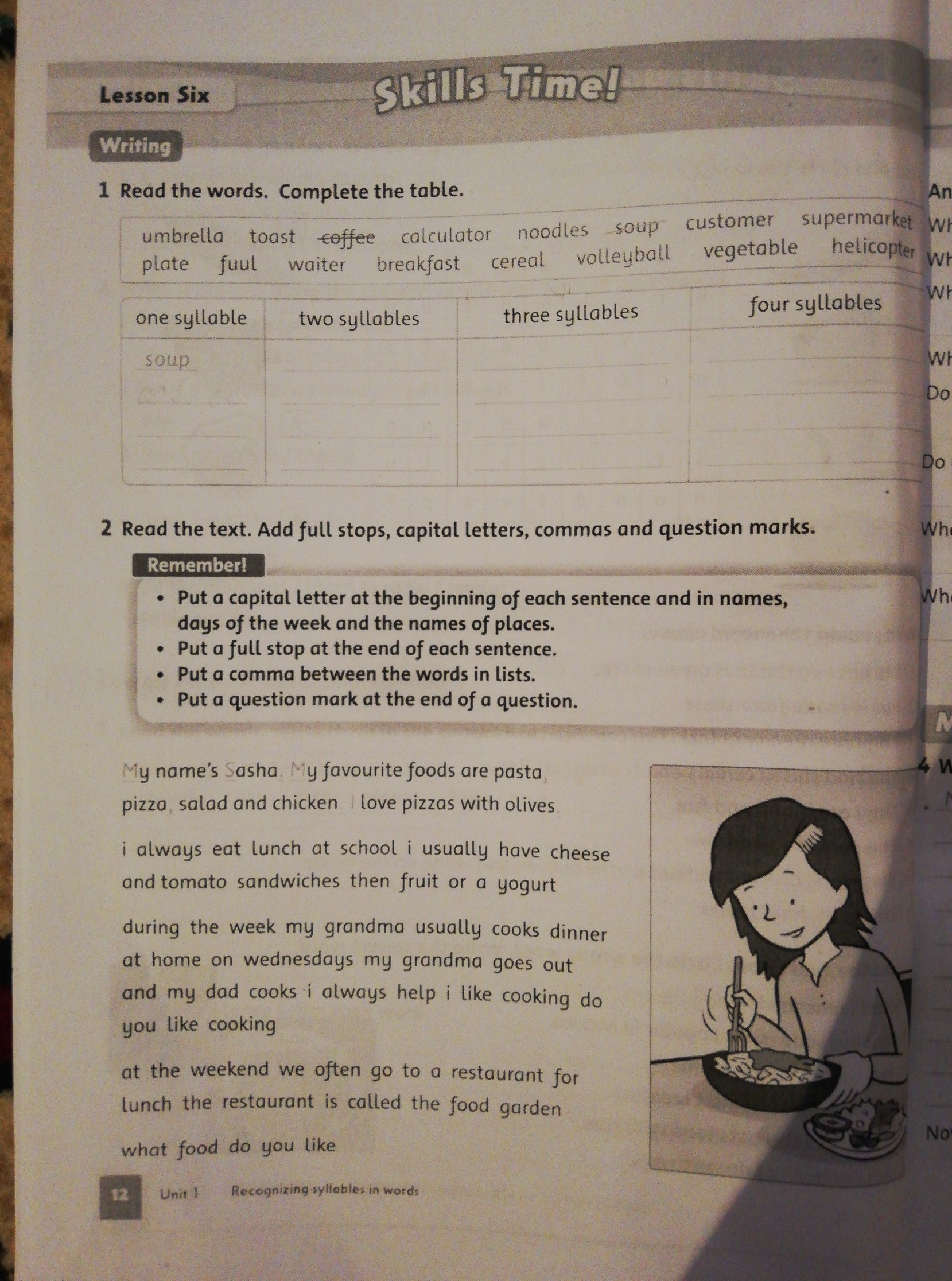 1 Read the words. Complete the table. 2 Read the text. Add stops, capital letters, commas and question marks. пожалуйста помогите ответы