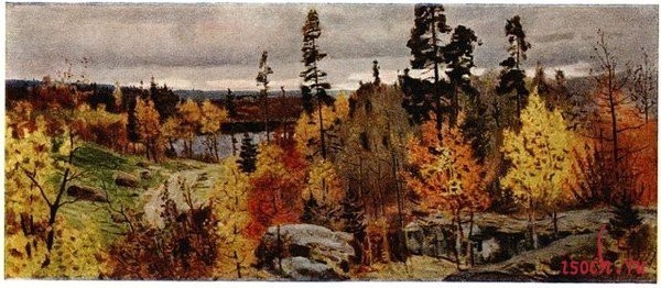 Передо мной на столе лежит репродукция картины русского художника-пейзажиста XX века Василия Васильевича Мешкова под названием «Осень в Карелии». На холсте изображена северная природа во всей ее красоте. Перед нами расстилается осень в своих ярких красках.