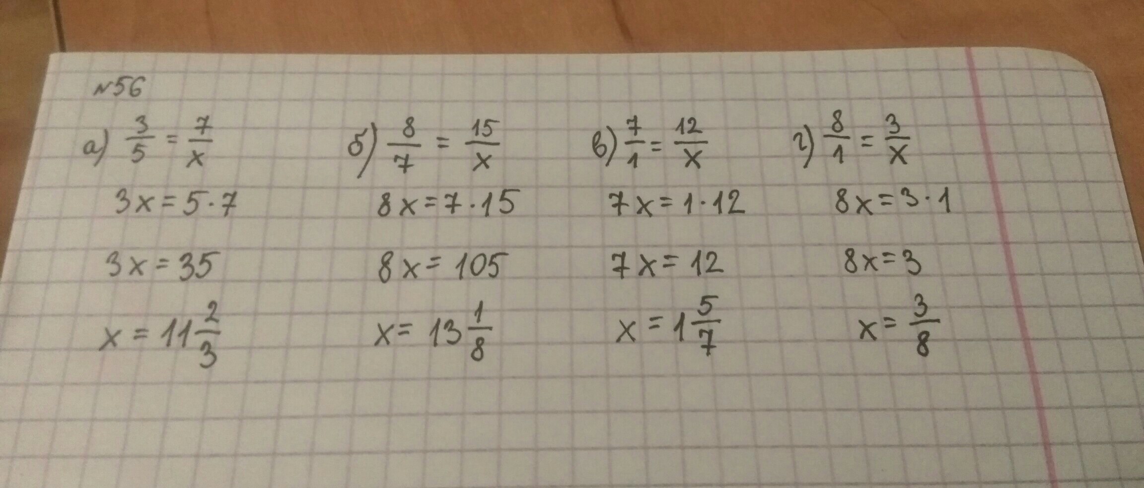 а)3/5=7/x б)8/7=15/x в)7/1=12/x г)8/1=3/x