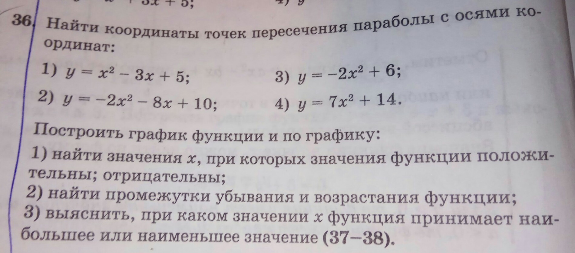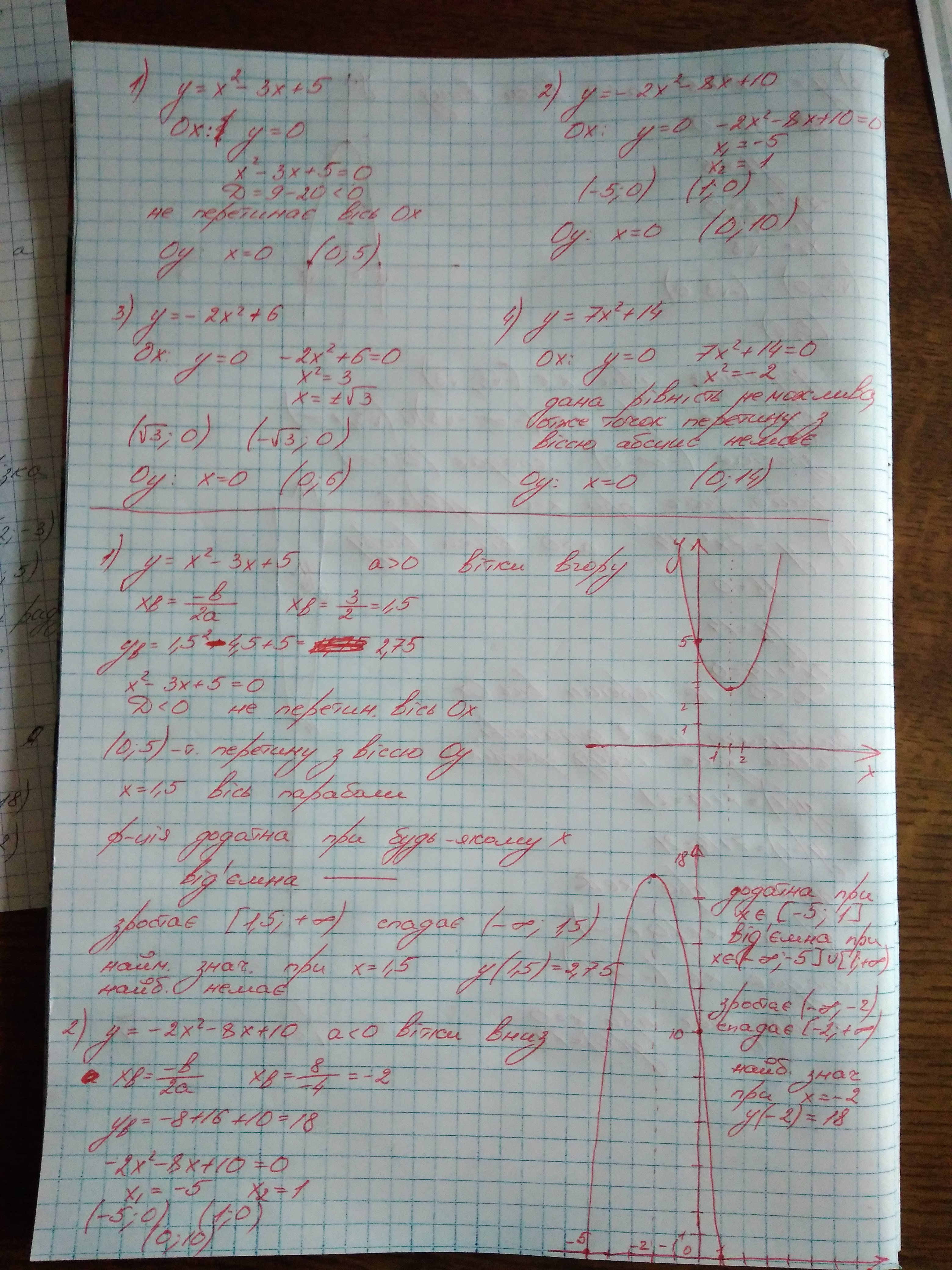 Для знаходження точок перетину з осями почерзі підставляємо замість х та y нуль і розв'язуємо утворені рівняння. Графік будуємо за алгоритмом ...