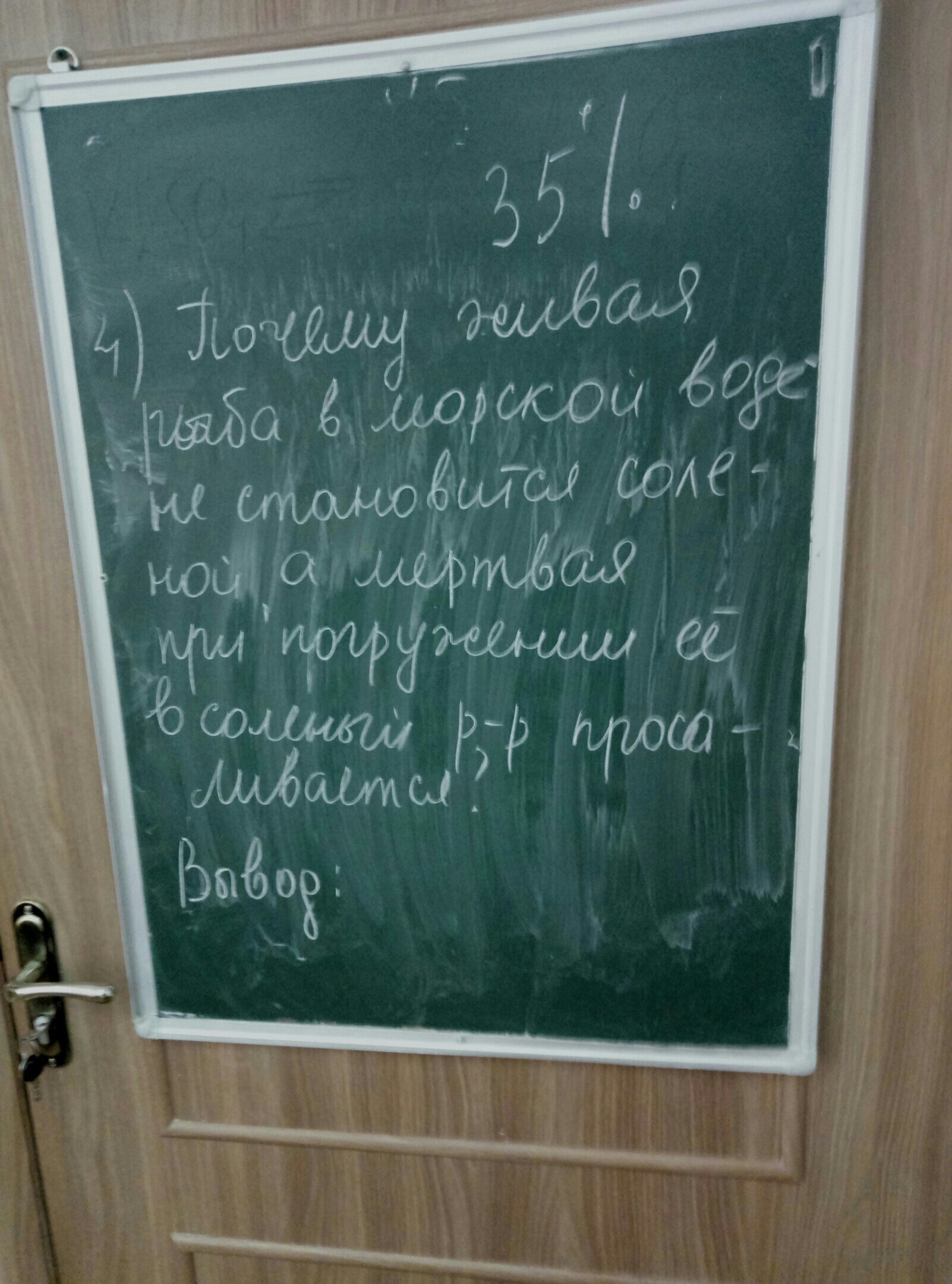2) Потому что такая рыба имеет приспособления для жизни в воде. После смерти, они перестают функционировать и не могут не дать всасываться соли в тело рыбы.