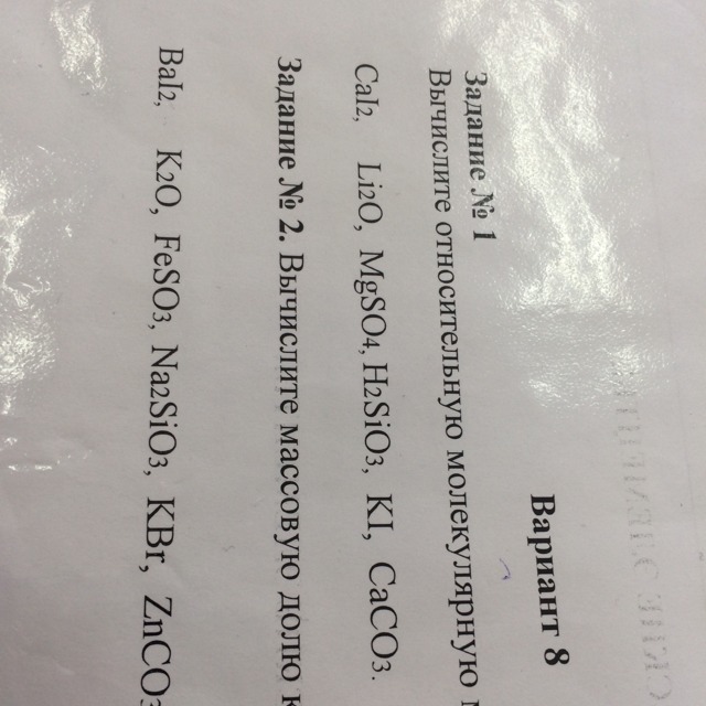 Пожалуйста вычислите относительную молекулярную массу следующих веществ