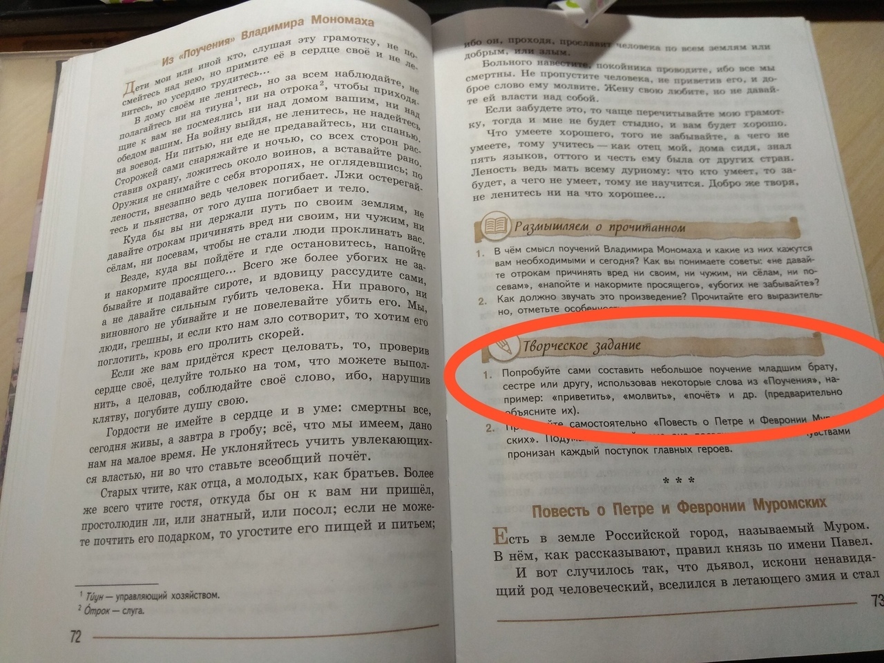 Дорогой братишка! Хочу слово молвить, если ты позволишь. А говорить с тобой буду о том, как улучшить свои качества и приобрести почёт у людей. Худой ум не знает не знает хороших дел и добрых слов. Вот и тебе советую я приобретать разум и мудрость, не оставлять их и не покидать их. Будь милосердным и милостыню подавай тому, кто нуждается. Это начало всякого добра. Имей страх Божий и будь человеколюбивым. Не отвергай нищего и убогого, заботься о престарелых и сиротах. Думай более о других, нежели о себе и тогда к тебе придёт добро и покой на сердце.