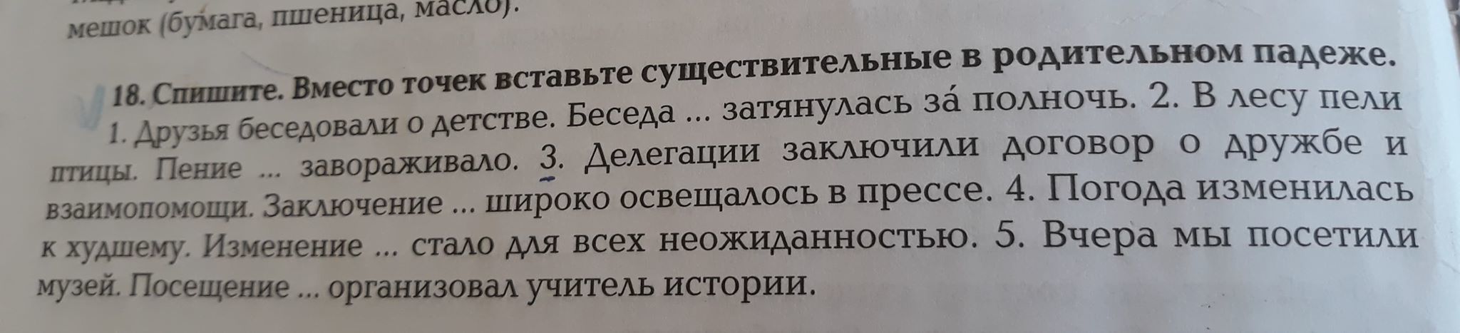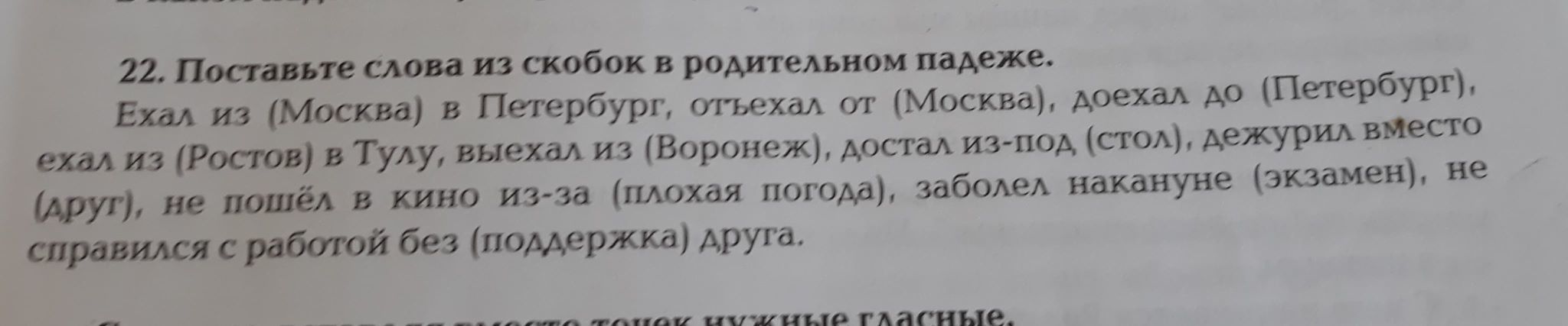 22. Москвы, от Москвы, до Петербурга, из Ростова, из Воронежа, из-под стола, вместо друга, плохой погоды, экзамена, поддержки