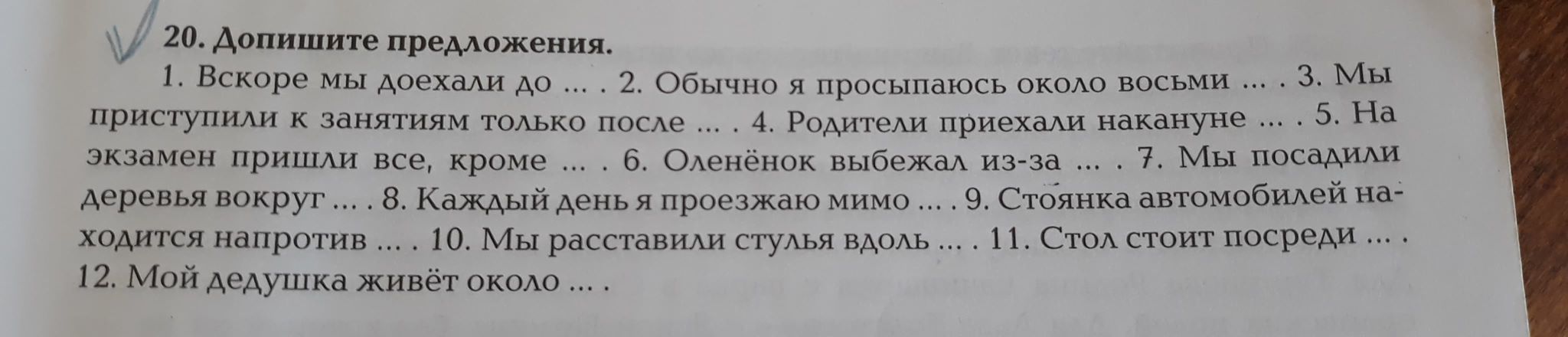 20. места, часов утра, обеда, вечером, одного, куста, дома, школы, магазина, стены, комнаты, парка.
