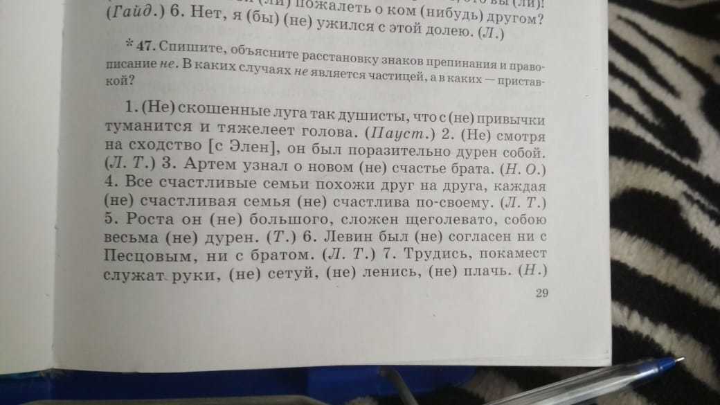 Не скошенные луга так дкшисты, что с непривычки туманится и и тяжелеет голова. 2. Не смотря на сходство, он был поразительно дурен собой. 3.Артем узнал о новом несчастье брата. 4. Все счастливые семьи похожи друг на друга, каждая несчасливая семья, несчасливая по- своему. 5. Роста он небольшого сложен щегеловато, собою весьма не дурен. 6. Левин был не согласен ни с Песцовым, ни с братом. 7. Трудись, покамест служат руки, не сетуй, не ленись, не плачь.