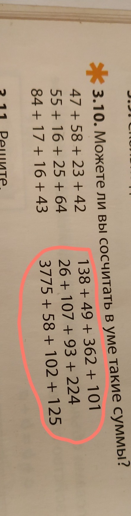 1) 138+49+362+101= сначала складываем 138+362=500 затем 49+101=150 потом 500+150= 650