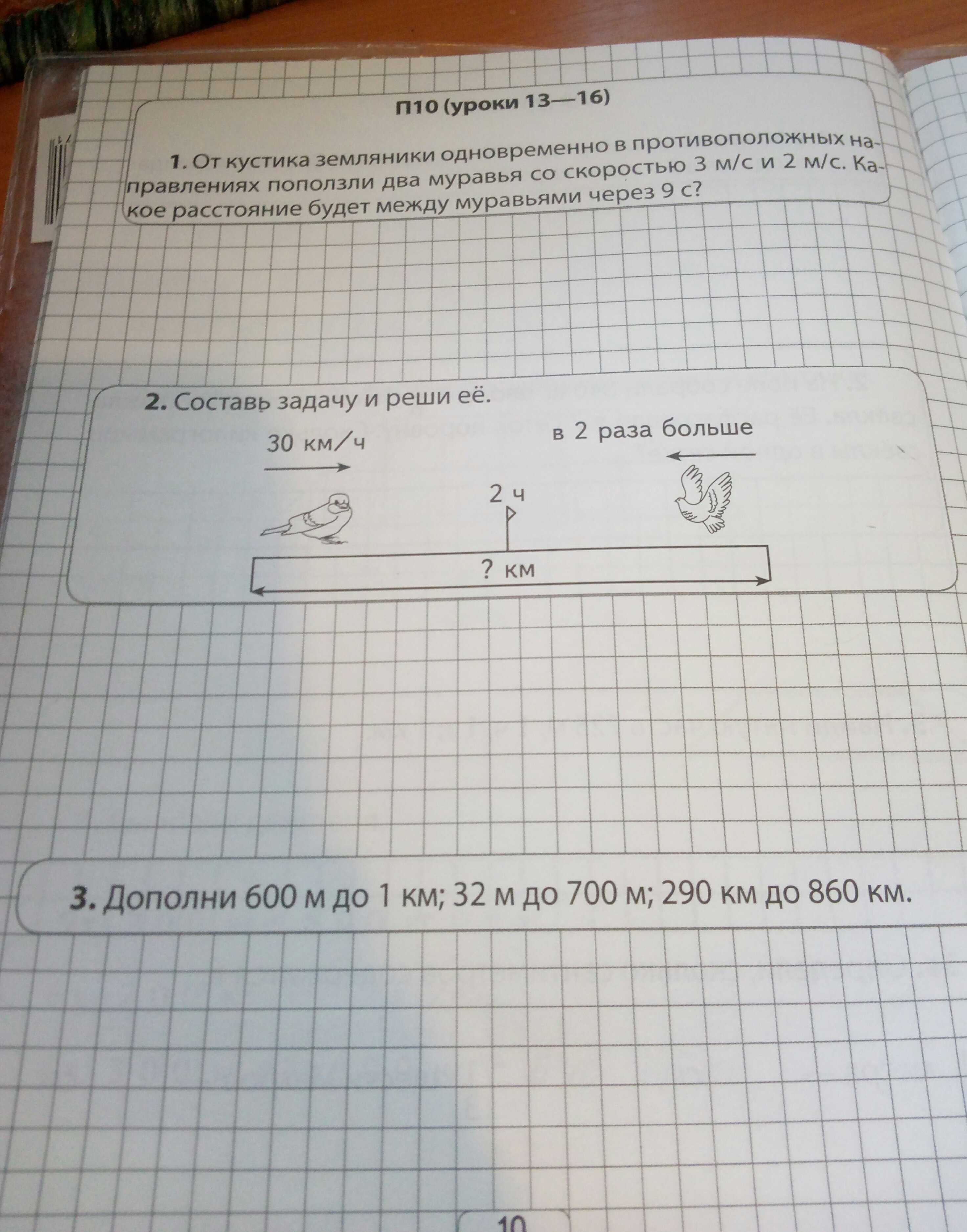 2. Скорость синички- 30 км/ч, а скорость голубя- в 2 раза больше.