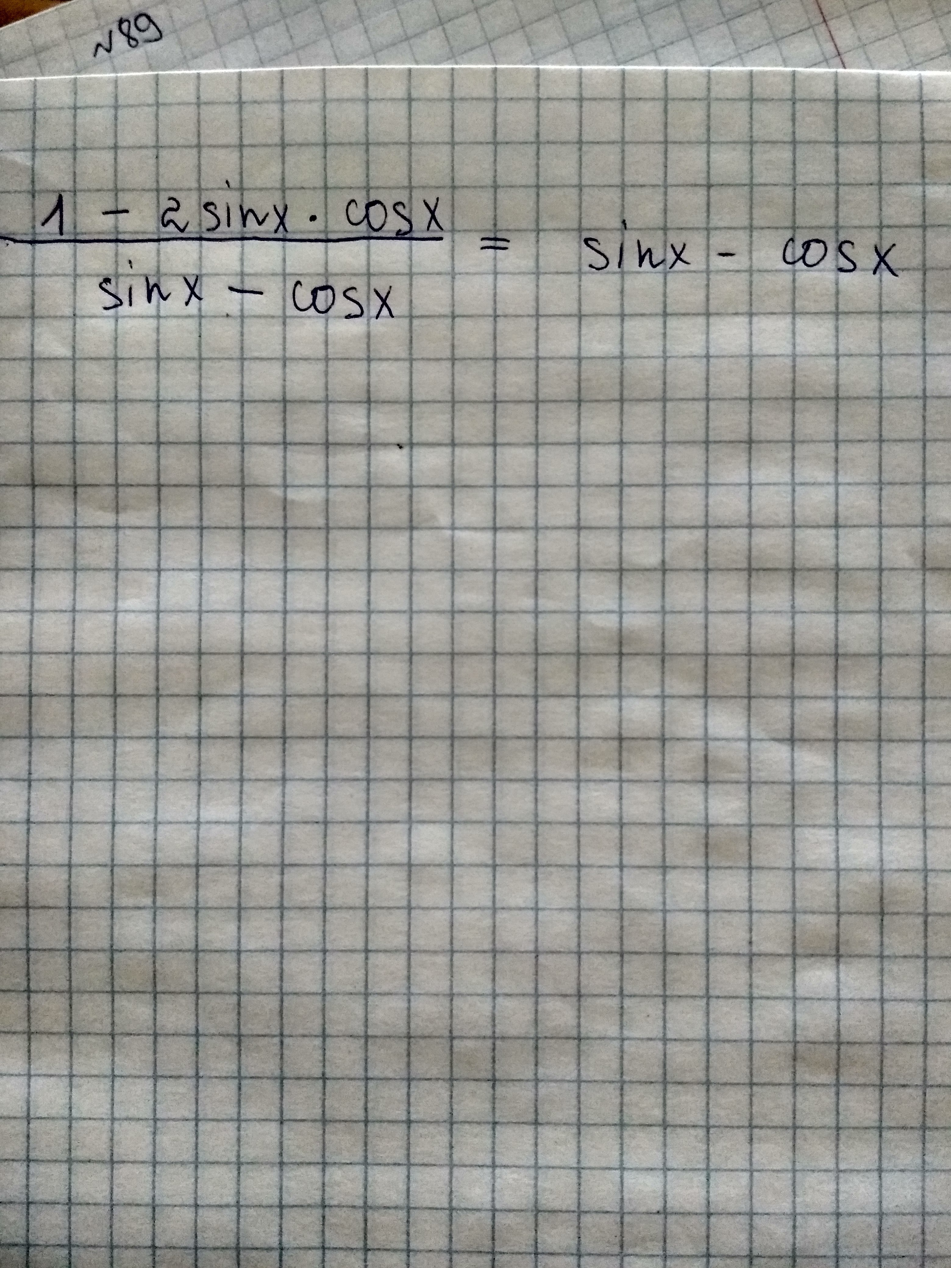 =(sin²x-2*sinx*cosx+cos²x)/(sinx-cosx)=(sinx-cosx)²/(sinx-cosx)≡sinx-cosx.