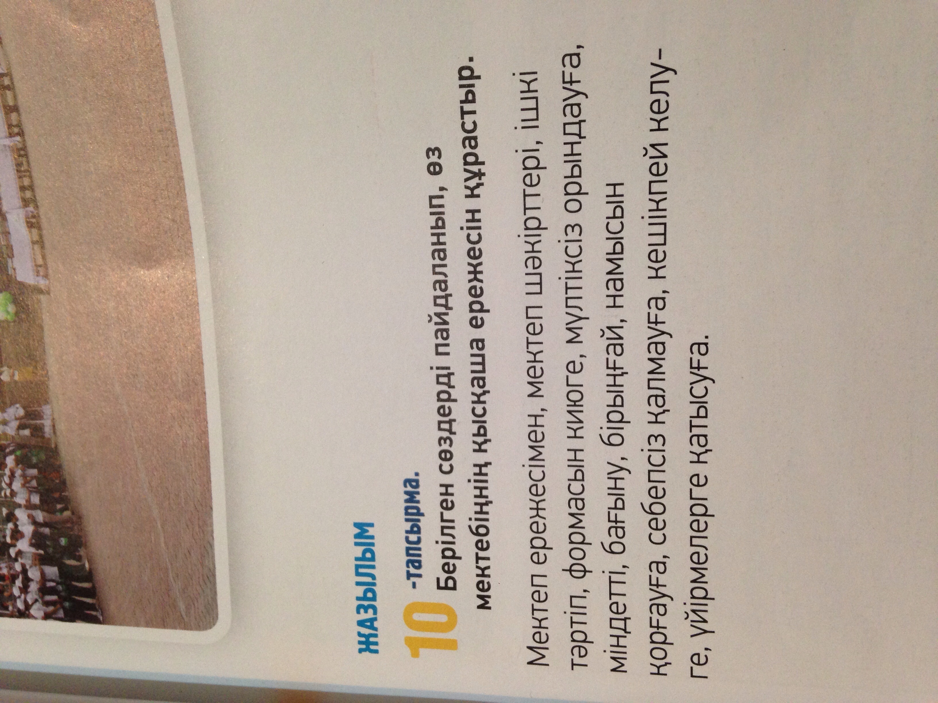 1 Мектеп шәкірттері ішкі тәртіпке бағынуы керек. Яғни, жүгірмеу, шуылдамау, мұғалімдерді сыйлау және т.б.