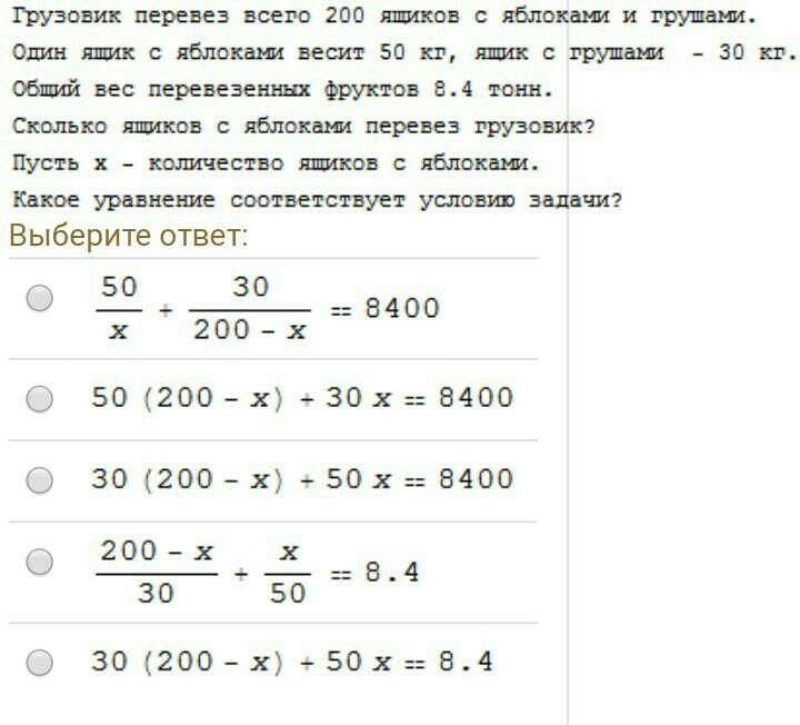 30 (200 - х) + 50 х = 8 . 4