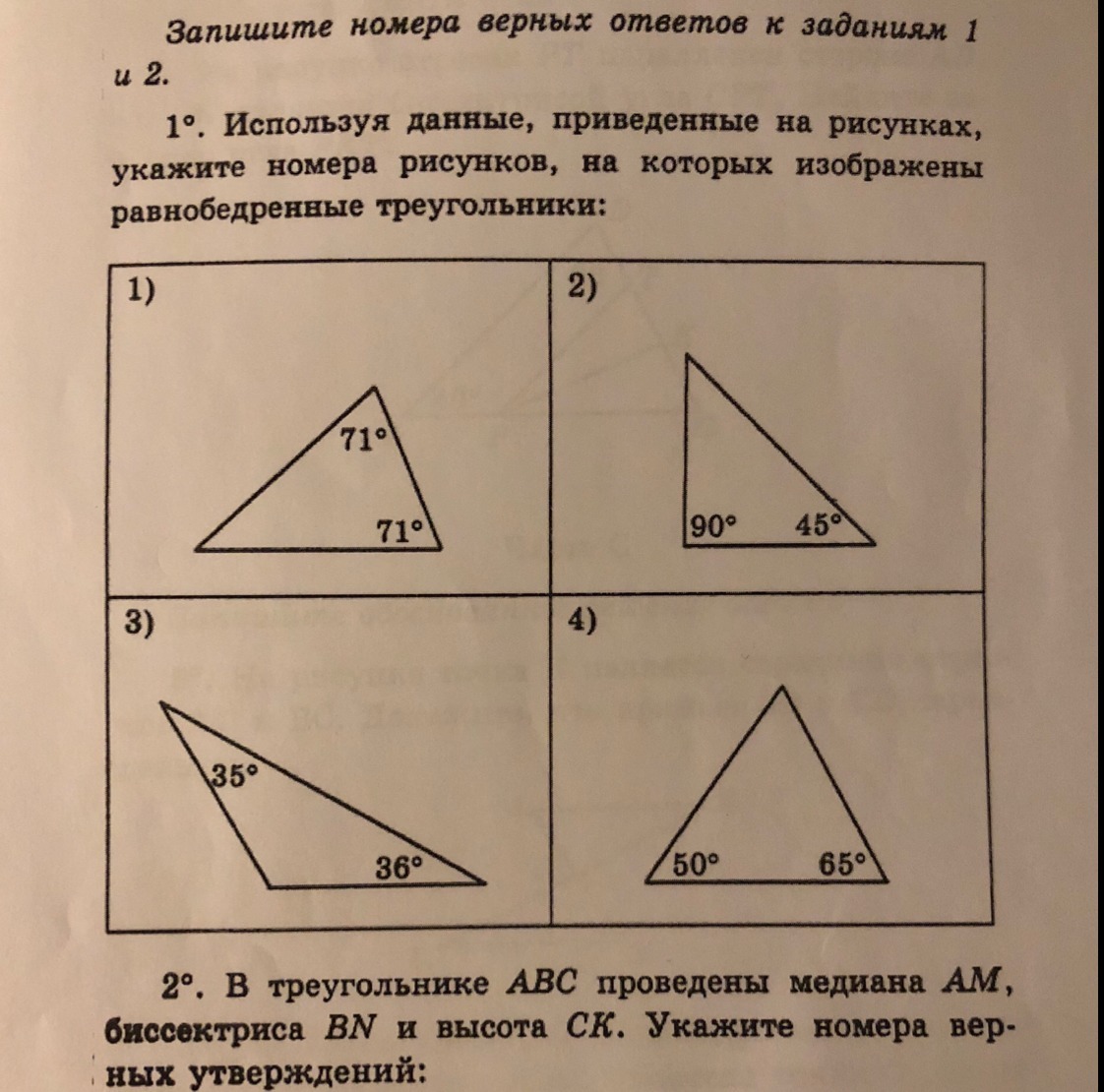 1 2 4. Так как сумма углов в треугольниках = 180 градусам.