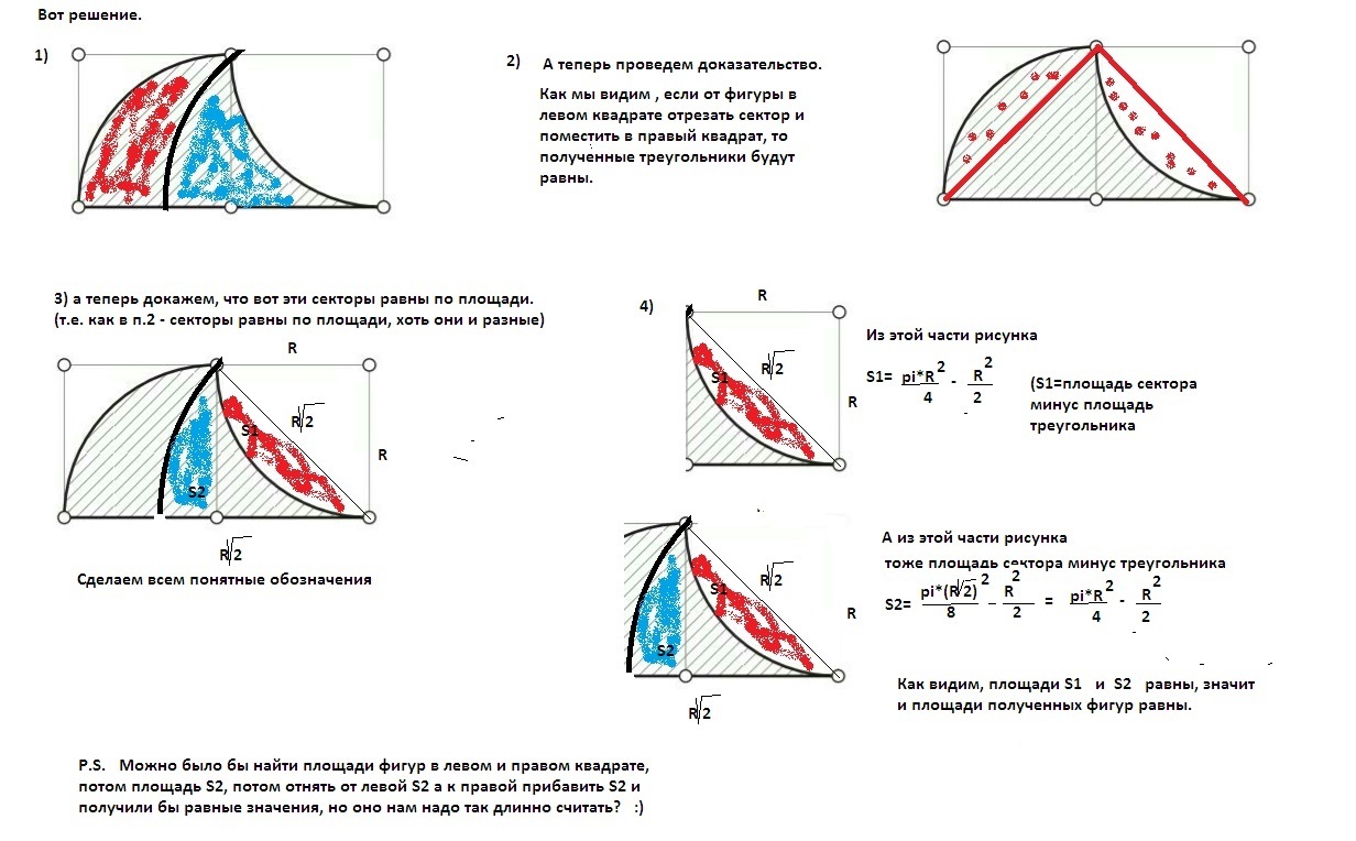 Трудно понять/описать про S3 как 1/8 от разности площадей круга и квадрата.