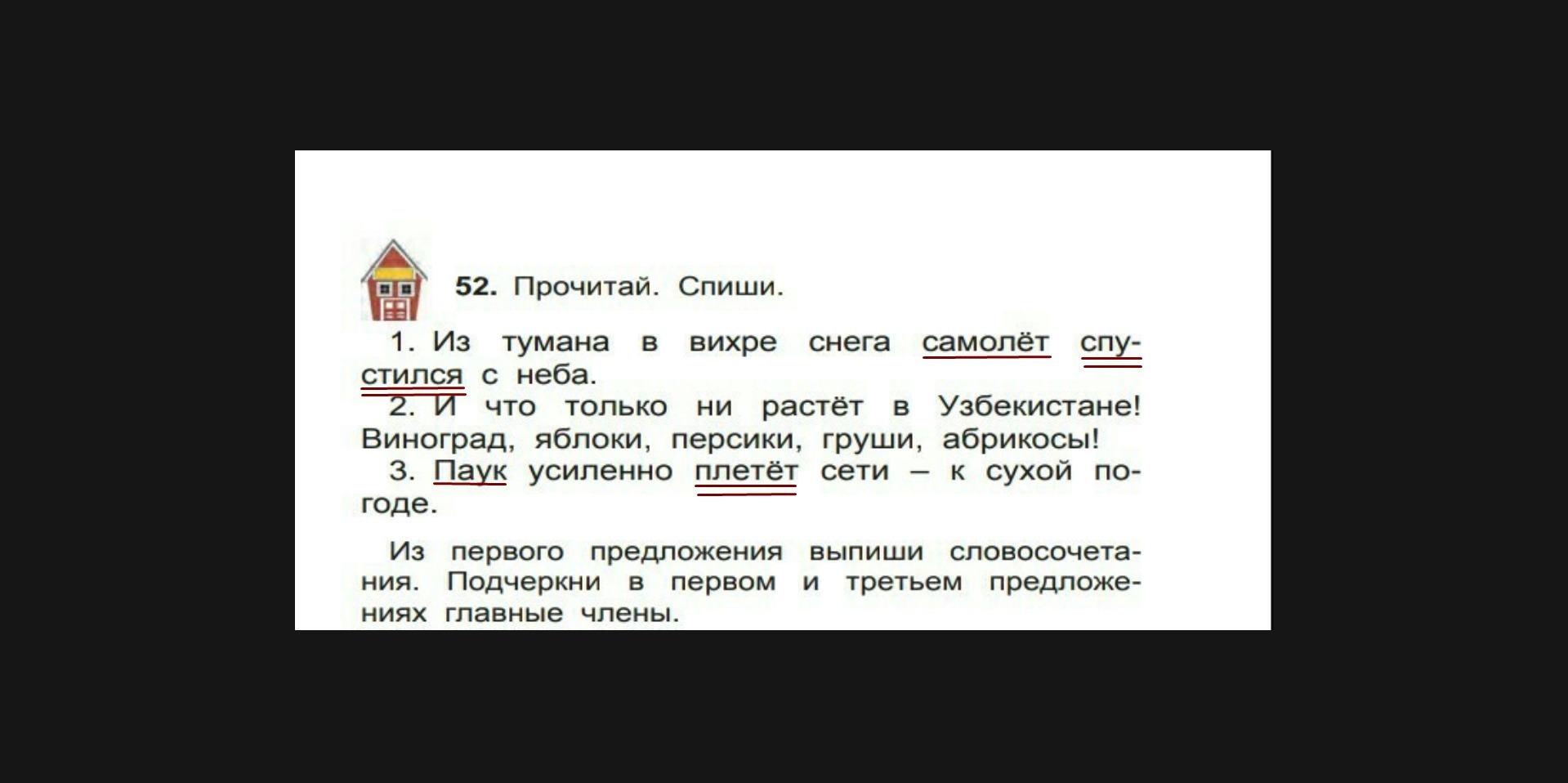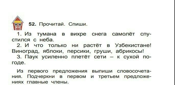 Из первого предложения выпеши словосочетания. Подчеркни в первом и третьем предложениях главный члены.