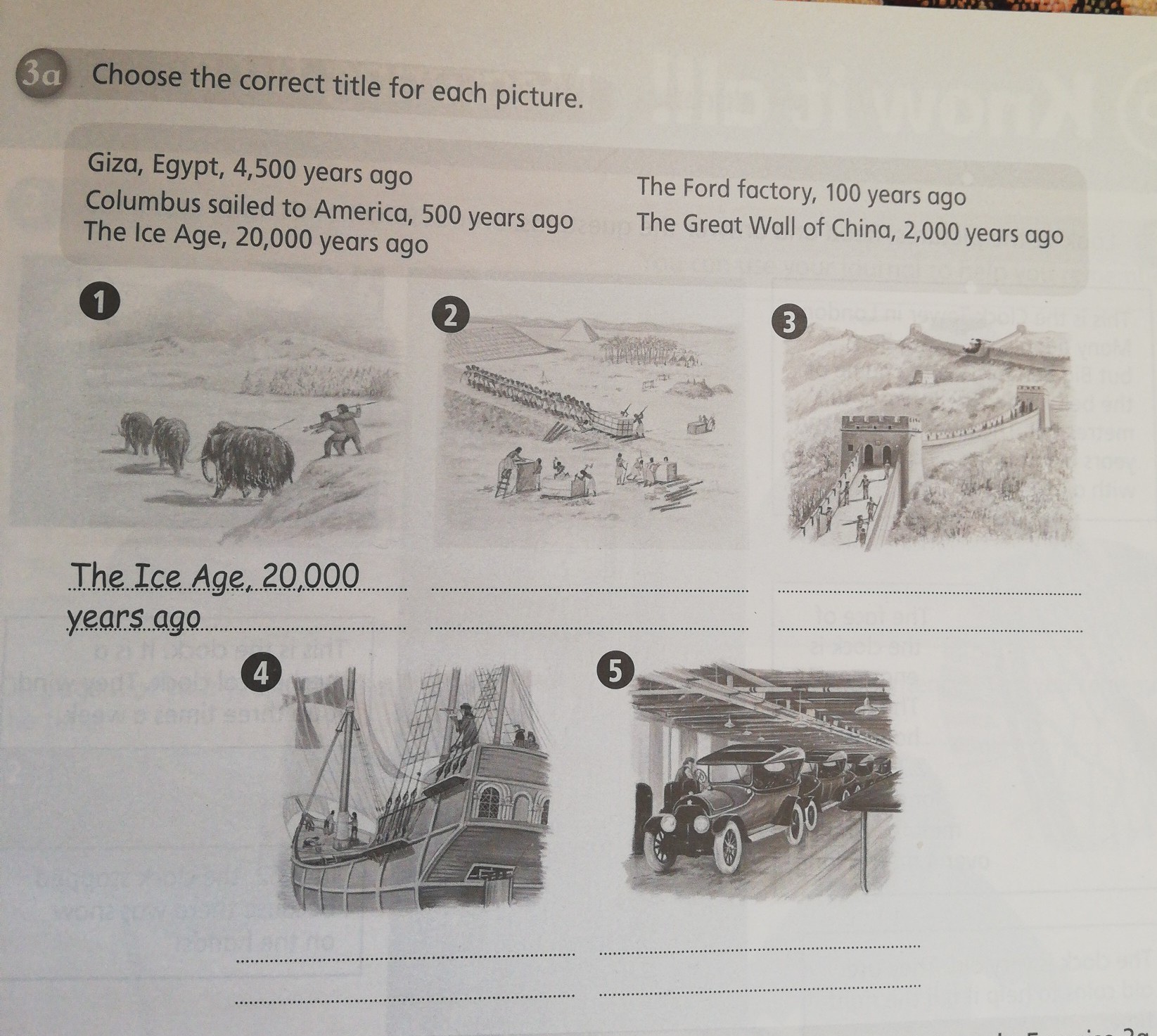 2 - Giza, 3 - the Great Wall of China 4 - Columbus, 5 - Ford