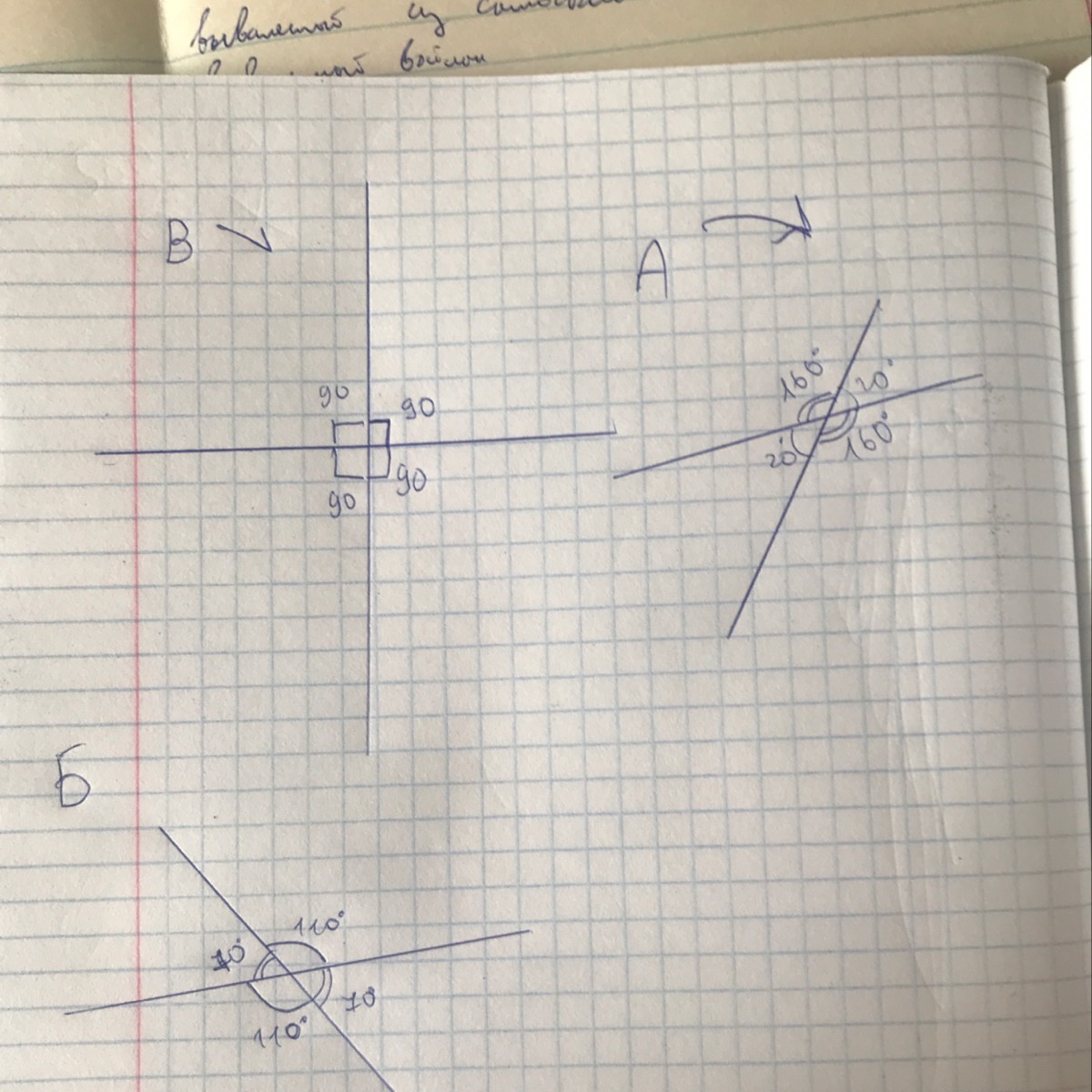 один из углов образовавшихся при пересичении двух прямых равен а20 б. 110 в.90(градусы)