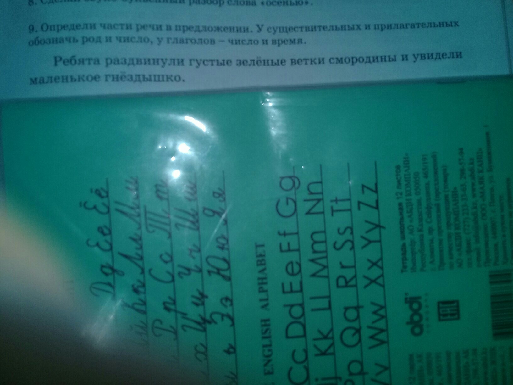 Ребята (существительное) раздвинули (глагол) густые (прилагательное) зеленые (прилагательное) ветки (существительное) смородины (существительное) и (союз) увидели (глагол) маленькое (прилагательное) гнездышко (существительное)