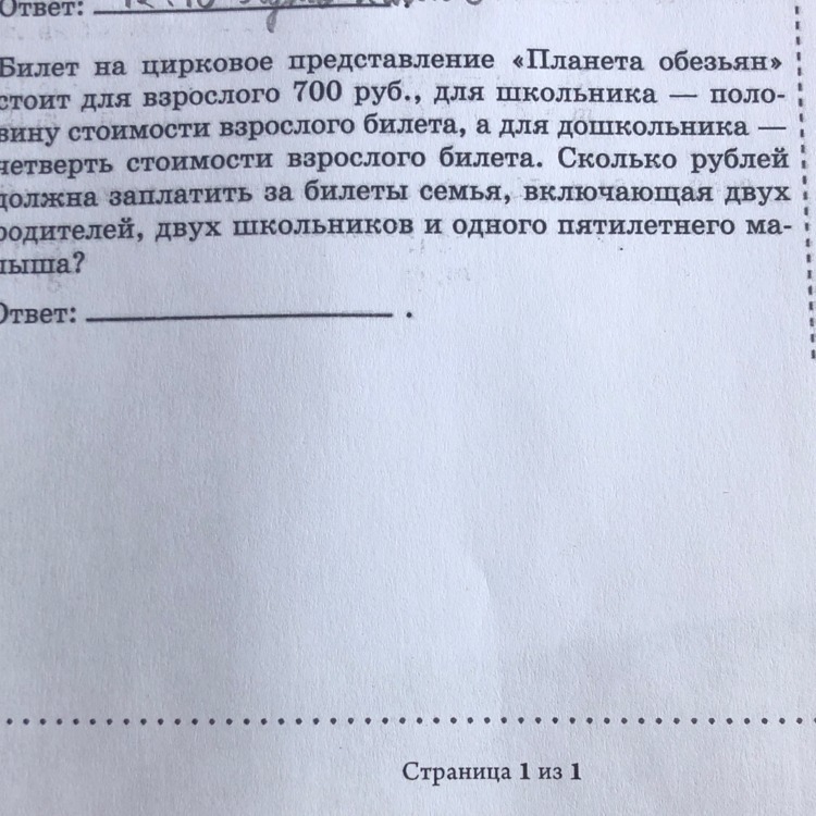 5)1400+700+175=2275 руб - заплатит за билеты семья