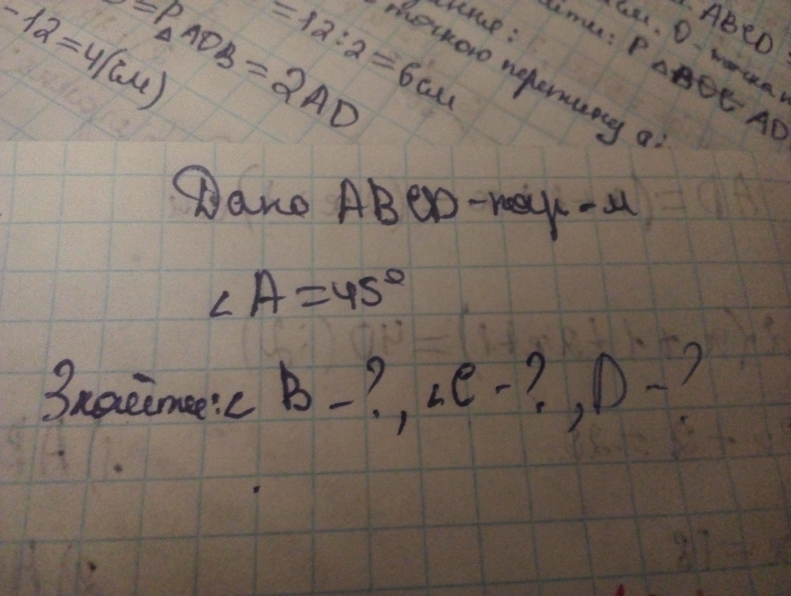 т.к АВСД -парал-м, то у него ВС ║ АД и AB║CD и противоположные углы равны