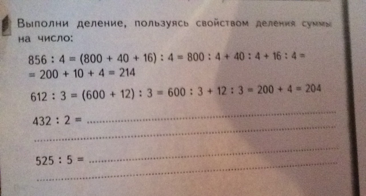 432:2=(400+30+2):2=400:2 +30:2 +2:2=200+15+1=216
