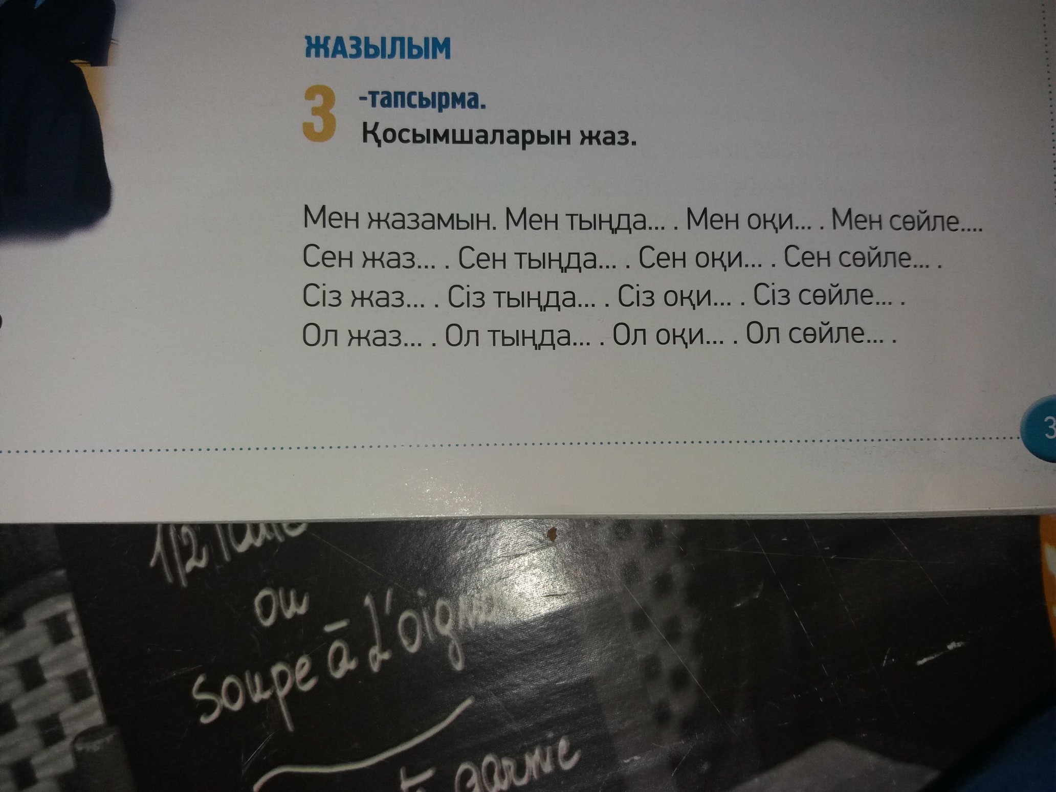 Мен жазамын. Мен тындаймын. Мен Оқимын. Мен сөйлеймін.