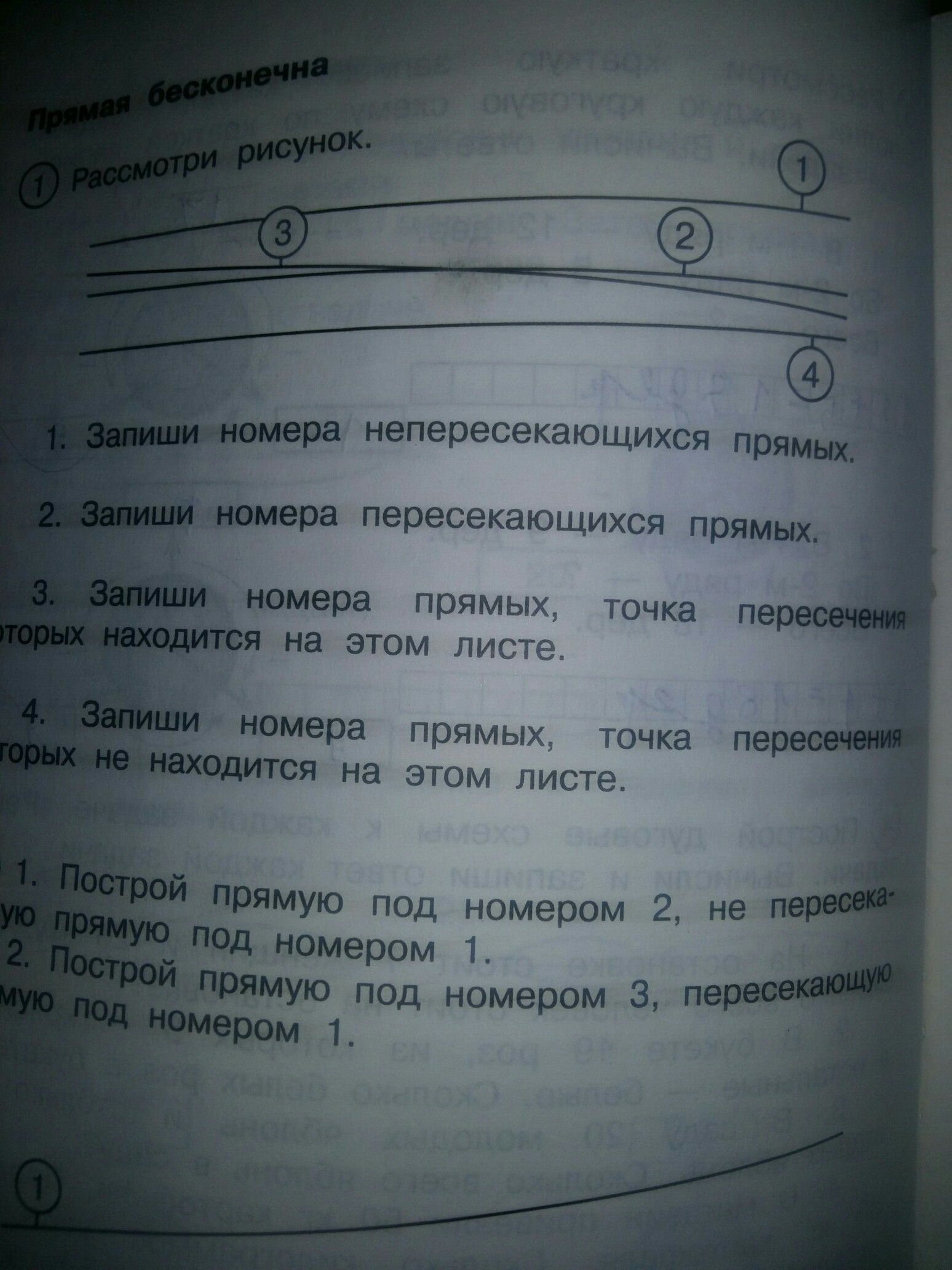 прямая бесконечная рассмотри рисунок .4 запиши номера прямих ,точка пересечения каторых не находится на этом листе. помогите